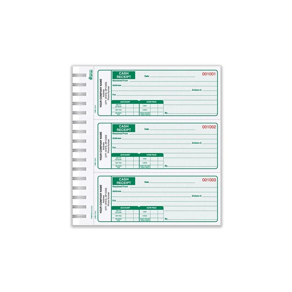 Cash Receipt Books, 3-to-a-page, Duplicate, 225 Sets/Book, Green