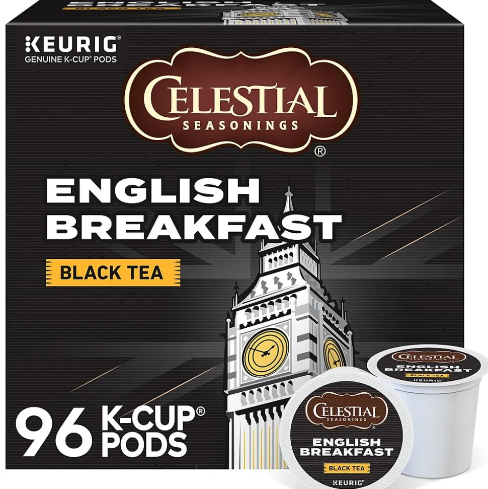 Give office staff or visitors an alternative to coffee with these English Breakfast tea pods. Black teas and just the right hint of floral notes give this hot beverage smooth, delicious flavor, and each pod brews a single serving without the need for steeping or boiling water. These Keurig K-Cup Celestial Seasonings tea pods work with Keurig brewing machines, making it easy to prepare your morning cup of tea.