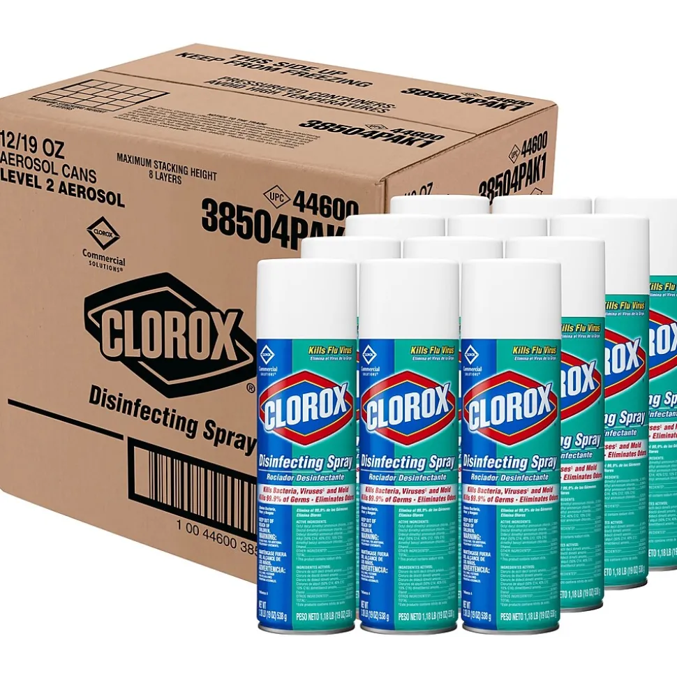 Clorox® Disinfecting Spray kills relevant bacteria, viruses and fungi that can cause serious illness and infection.It is EPA-registered to kill as many as 64 microorganisms and it kills the majority of bacteria on its EPA Master Label in 3 minutes.This disinfecting spray meets EPA criteria for use against SARS-CoV-2, the virus that causes COVID-19. With incredible versatility,Clorox® Disinfecting Spray can be used on a wide variety of hard surfaces while deodorizing and actually eliminating the bacteria that cause bad odors. From Clorox Commercial Solutions®, this disinfecting spray is ideal for use in offices, day care centers, schools, busy healthcare environments and other commercial facilities.