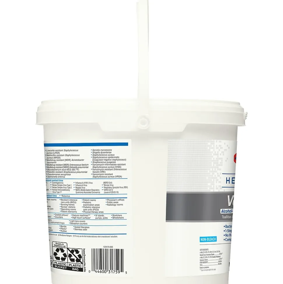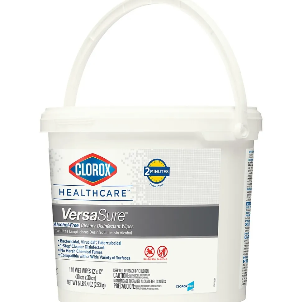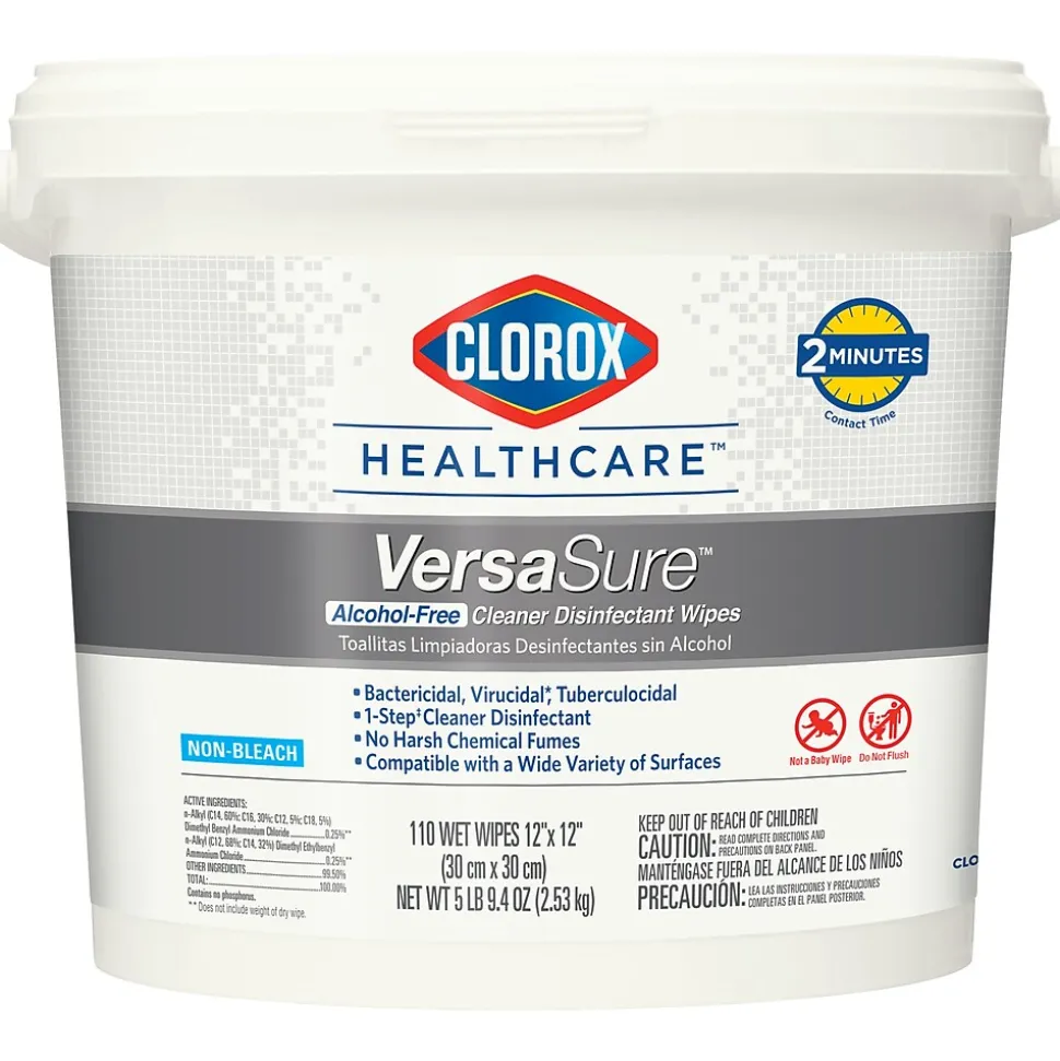 Clorox® Healthcare VersaSure Cleaner Disinfectant Wipes kill microorganisms quickly on a broad range of surfaces. These strong and durable alcohol-free wipes are a one-step solution to cleaning and disinfecting. VersaSure™ wipes are EPA-registered to kill pathogens on hard surfaces in as fast as 30 seconds for most bacteria and viruses. These disinfectant wipes meet EPA criteria for use against SARS-CoV-2, the virus that causes COVID-19. Designed for patient and staff comfort, these wipes are formulated with no harsh chemical odors, fumes, or added fragrances. Available in a variety of wipe sizes to fit a variety of cleaning needs. Intended for use in commercial settings.