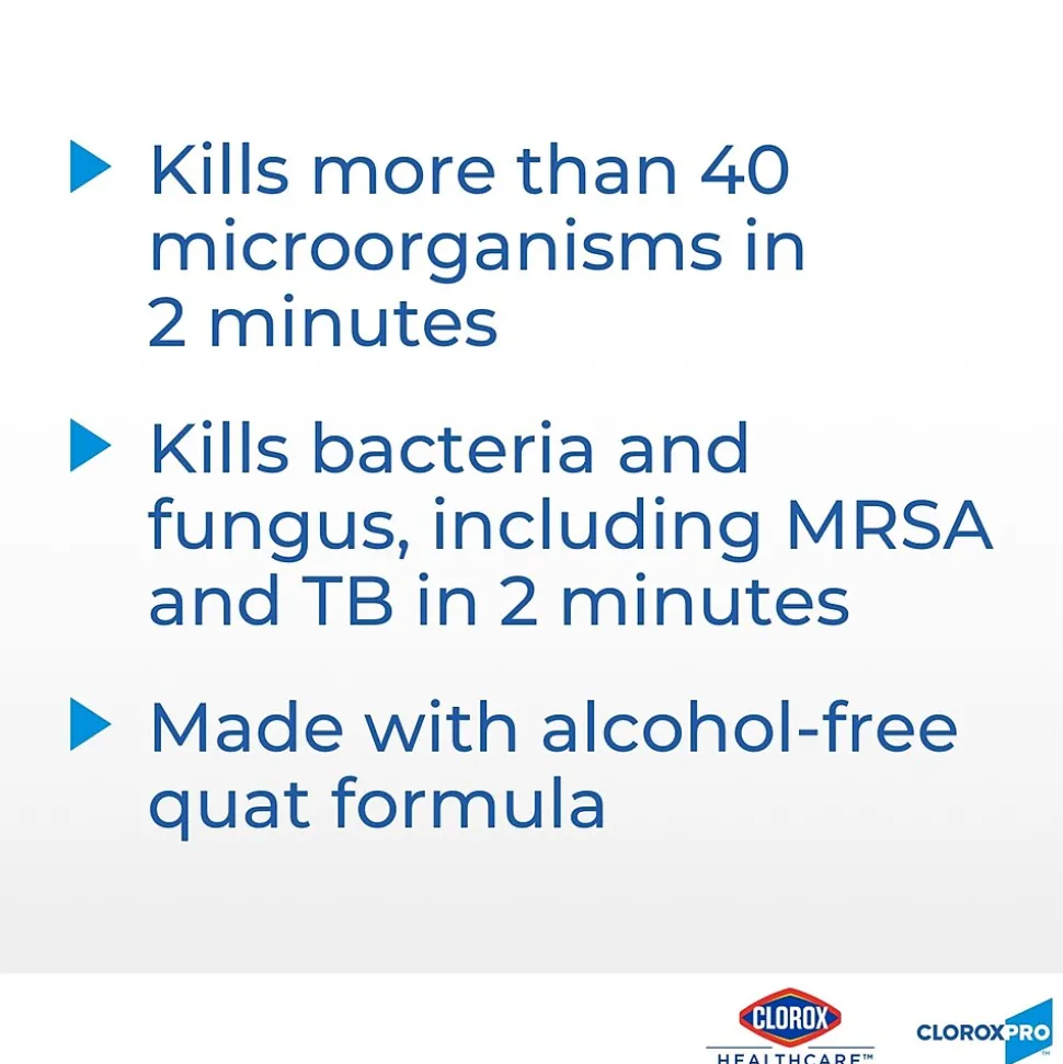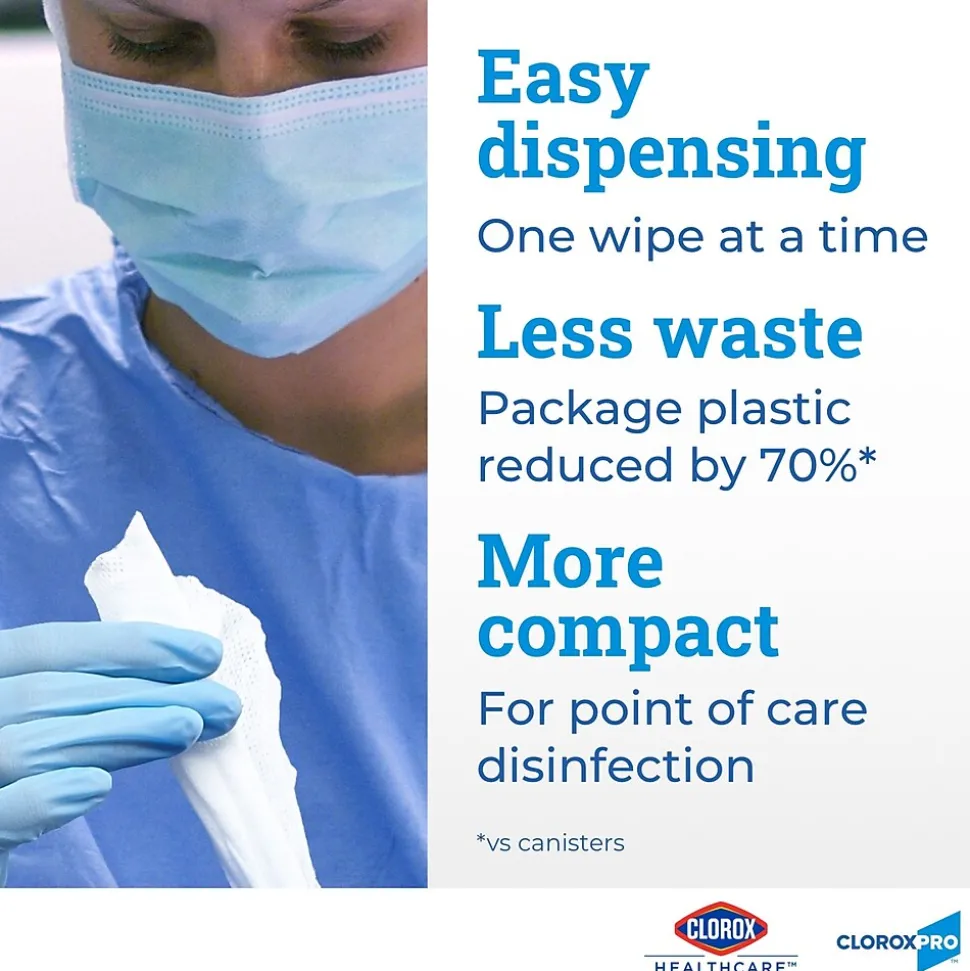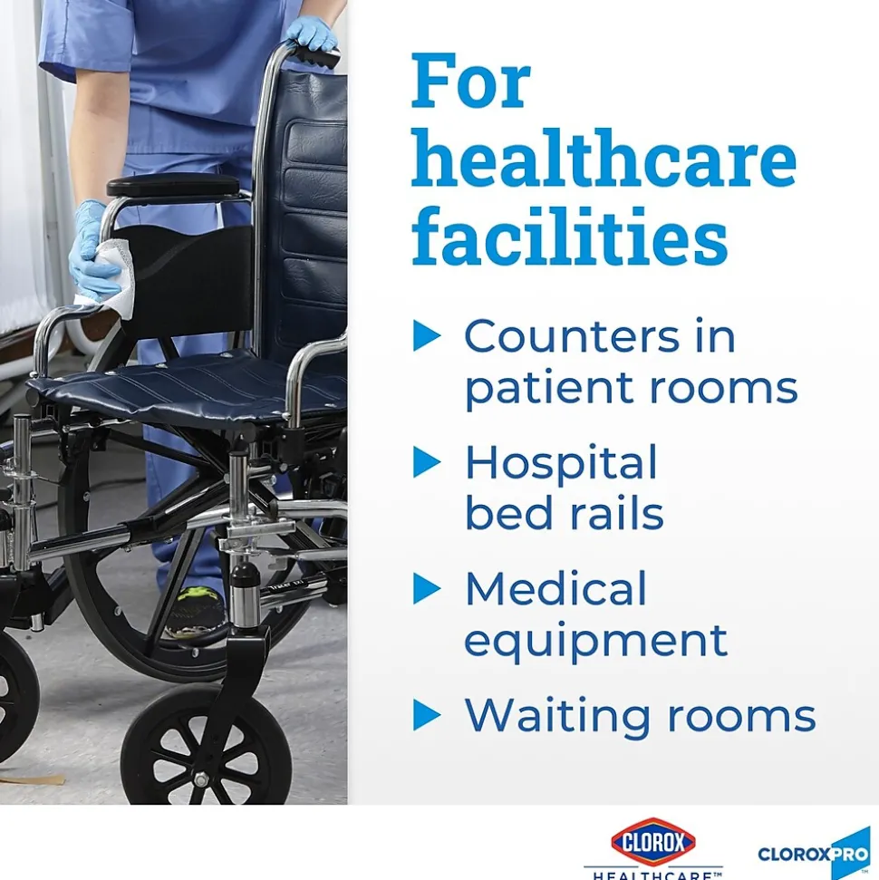 Clorox® Healthcare VersaSure Cleaner Disinfectant Wipes kill microorganisms quickly on a broad range of surfaces. These strong and durable alcohol-free wipes are a one-step solution to cleaning and disinfecting. VersaSure™ wipes are EPA-registered to kill pathogens on hard surfaces in as fast as 30 seconds for most bacteria and viruses. These disinfectant wipes meet EPA criteria for use against SARS-CoV-2, the virus that causes COVID-19. Designed for patient and staff comfort, these wipes are formulated with no harsh chemical odors, fumes, or added fragrances. Available in a variety of wipe sizes to fit a variety of cleaning needs. Intended for use in commercial settings.