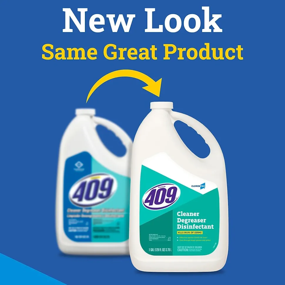 Formula 409 Cleaner Degreaser Disinfectant cuts through grease, grime and food stains while killing 99.9% of germs on hard nonporous surfaces. As an EPA-registered disinfectant and sanitizer, this versatile cleaner is formulated to kill Salmonella, Staph, E. Coli, and athlete’s foot fungus on non-food-contact surfaces. It also contains no bleach, making it suitable for a variety of surfaces like countertops, stovetops and stainless steel appliances. From CloroxPro, this degreaser and disinfectant powers through tough messes and is perfect for use in commercial kitchens, schools and office break rooms. Trusted by professionals for more than a century, CloroxPro is dedicated to providing proven commercial cleaning and disinfecting solutions.