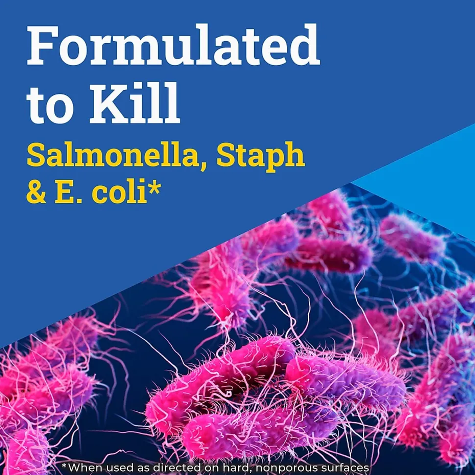 - KILLS 99.9% OF GERMS: Kills 99.9% of germs including Salmonella, Staphylococcus aureus (Staph) and E. coli and athlete’s foot fungus on hard nonporous surfaces