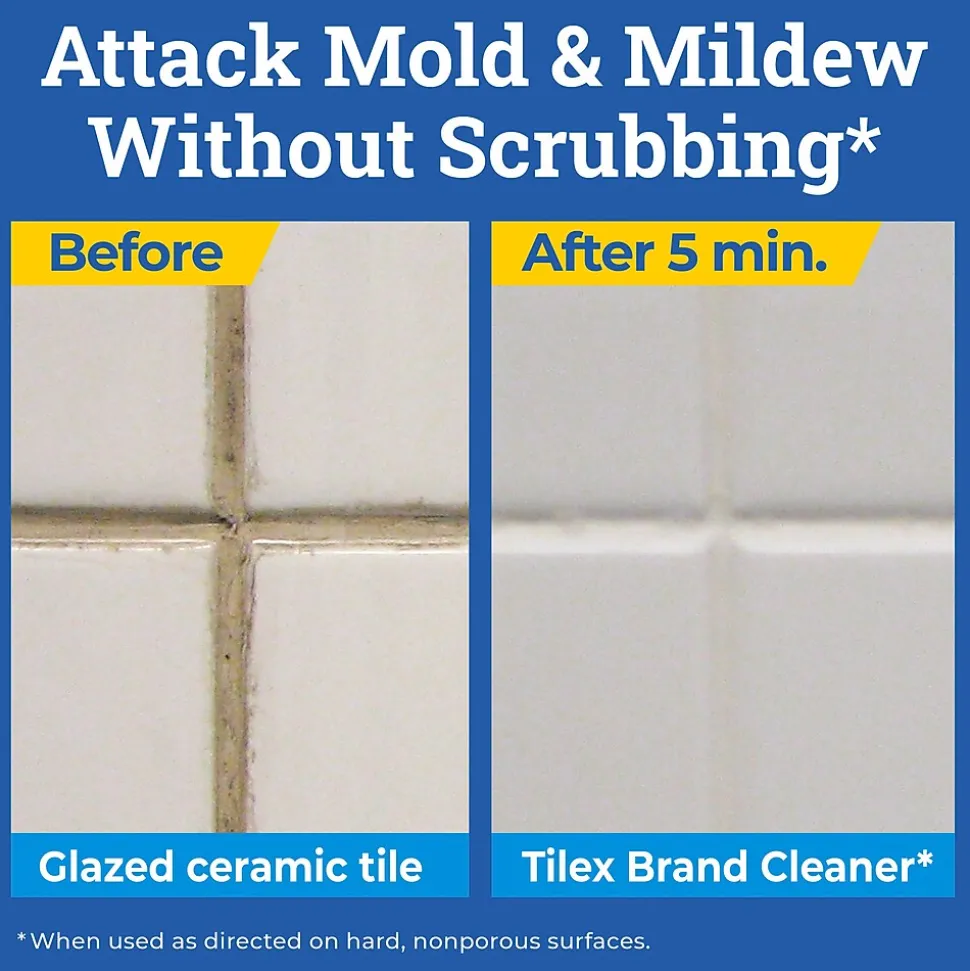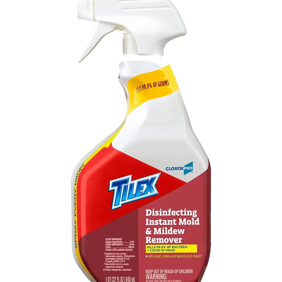 CloroxPro Tilex Disinfecting Instant Mold and Mildew Remover kills 99.9% of viruses* and bacteria, including the COVID-19 virus*. This disinfecting spray kills mold, mildew, and bacteria as it cleans*, removing mildew stains without scrubbing. The unique formula whitens tile and grout and dissolves soap scum as you spray. It removes and destroys mold spores and cleans tiles, grout, toilets and fiberglass. CloroxPro mildew remover is ideal for offices, day care centers, schools, hotels, restaurants and other commercial facilities. Refill your 32 ounce bottle and spray every drop with Smart Tube technology that reaches to the very bottom of the bottle. CloroxPro, where clean means everything. Packaging may vary. Staphylococcus aureus, Salmonella enterica, Trichophyton interdigital (Athlete’s Foot Fungus), Influenza A virus. Kills SARS-CoV-2 on hard, nonporous surfaces. Follow disinfection directions.