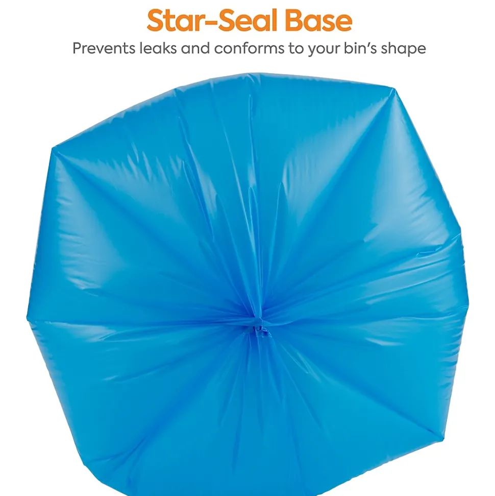Ensure your workspace is safe from contamination with these biohazard trash bags. The blue color is easily visible to ensure cautious handling and opaque to hide the contents, and the 30-gallon capacity is compatible with industry-standard cans for a snug fit. These Coastwide Professional™ biohazard trash bags meet federal and state regulations for tear and dart impact resistance to ensure safe waste disposal.