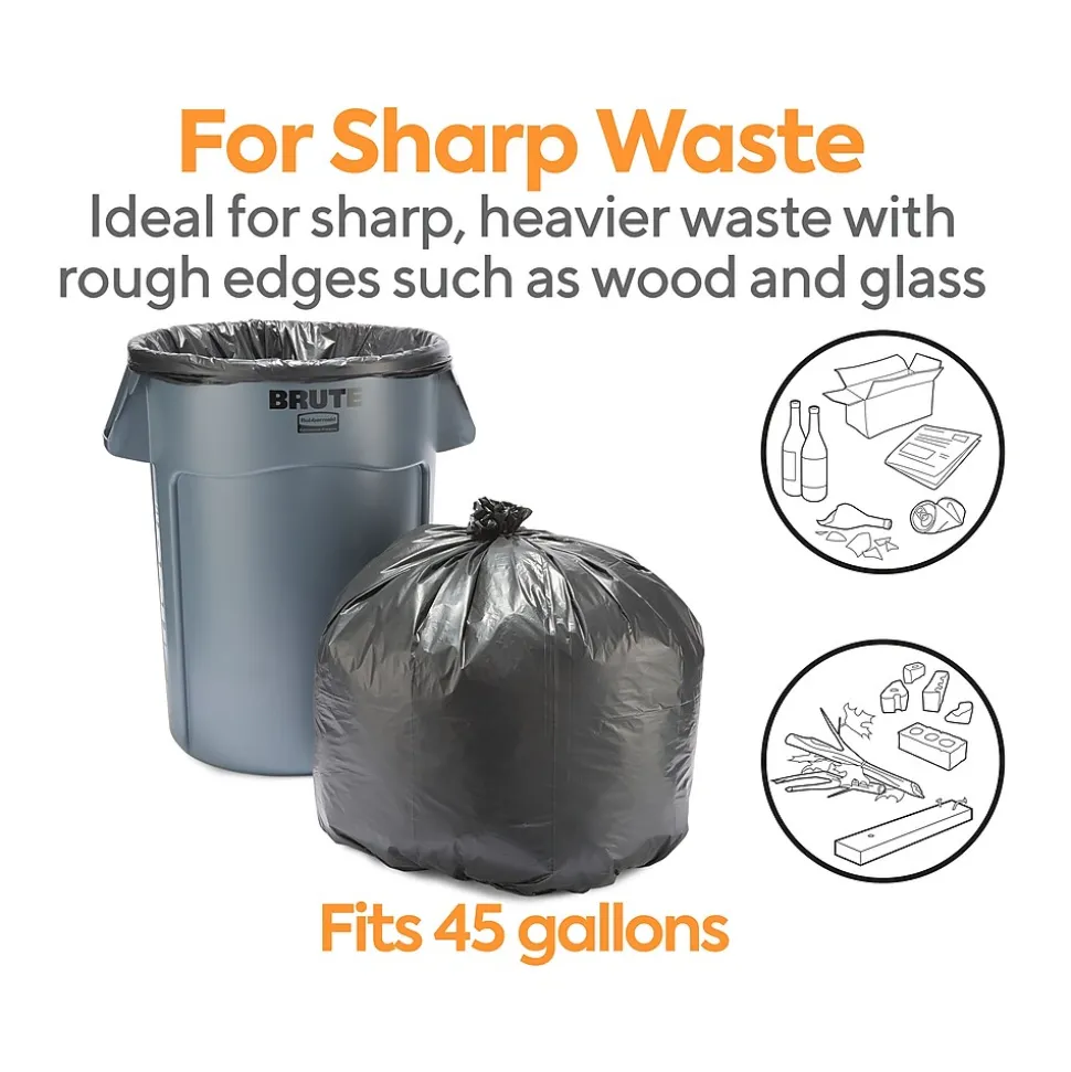 - These 40-45 gal. industrial trash bags with extra heavy strength are ideal for all trash applications, including heavy trash at your home or office