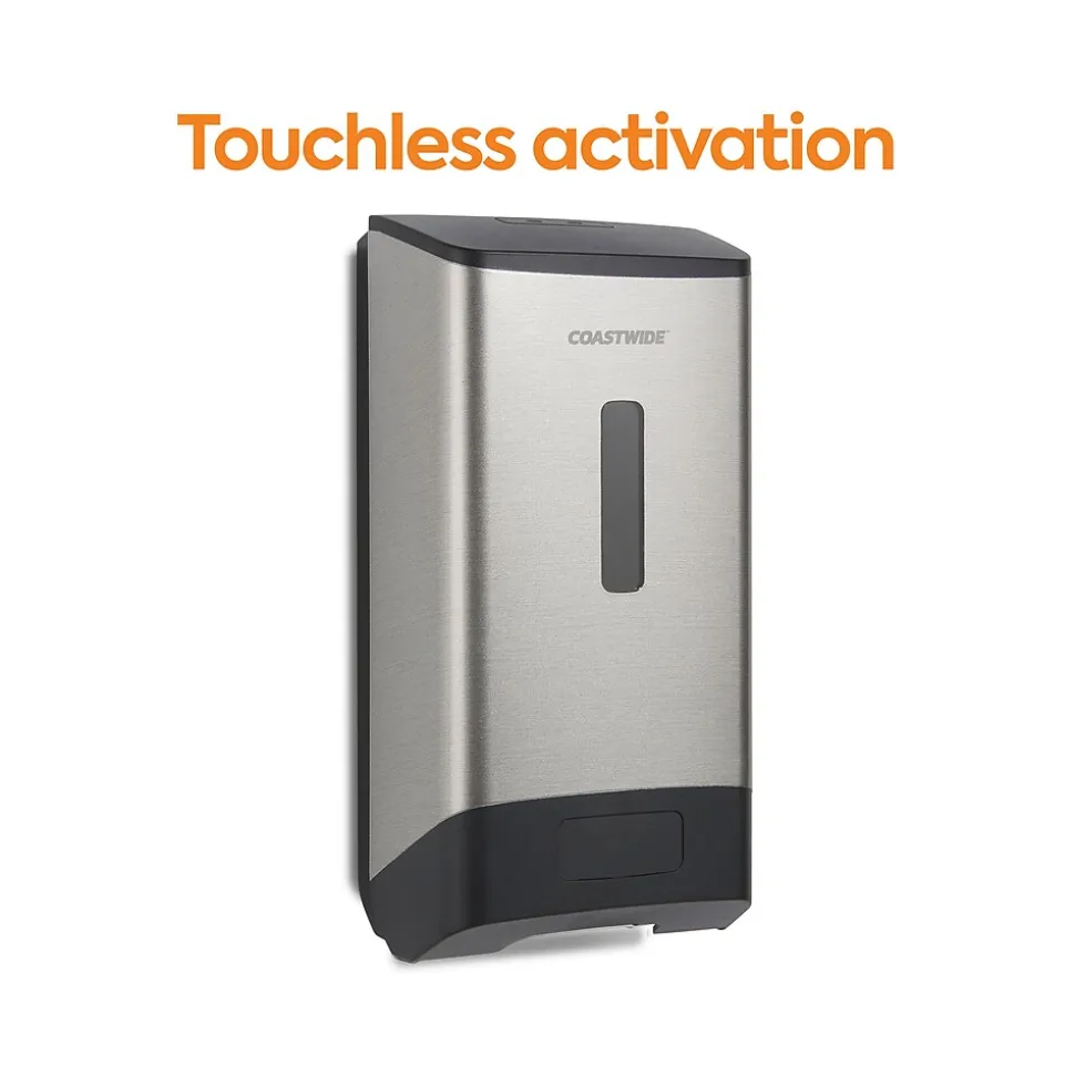Make handwashing simple with this hands-free electronic soap dispenser. The adjustable output helps control consumption of J-Series foam soap to prevent waste, and the color-coded interior touchpoints make it easy for staff to refill.This Coastwide Professional™ J-Series automatic soap dispenser has a clear window for easy supply monitoring and a back-up manual dispense mode for when batteries run out, to ensure continuous service.Engineered to work with J-Series foam soap.