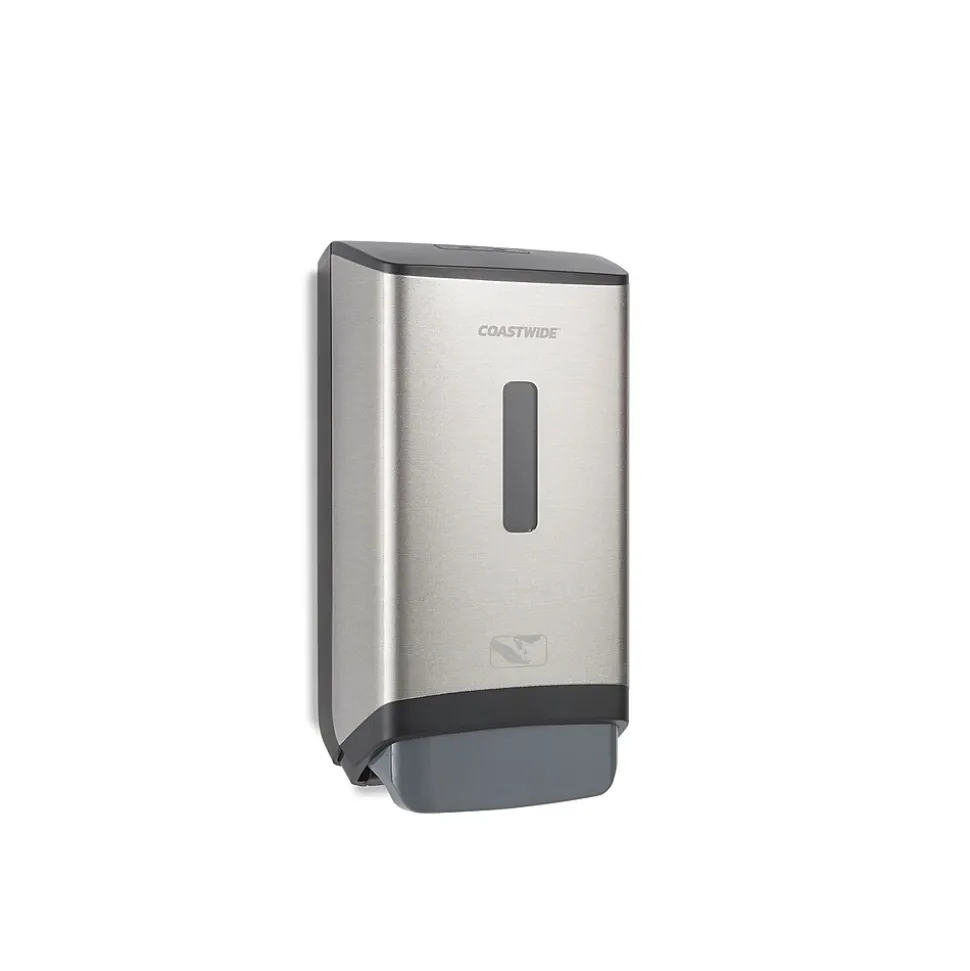 Control usage with the high and low output settings on this soap dispenser.Use the integrated window on this soap dispenser to provide a quick, efficient estimate of the level of product remaining.This Coastwide Professional™ J- Series manual soap dispenser features color-coded touch points for convenient use and is engineered to work with J-Series foam soap.