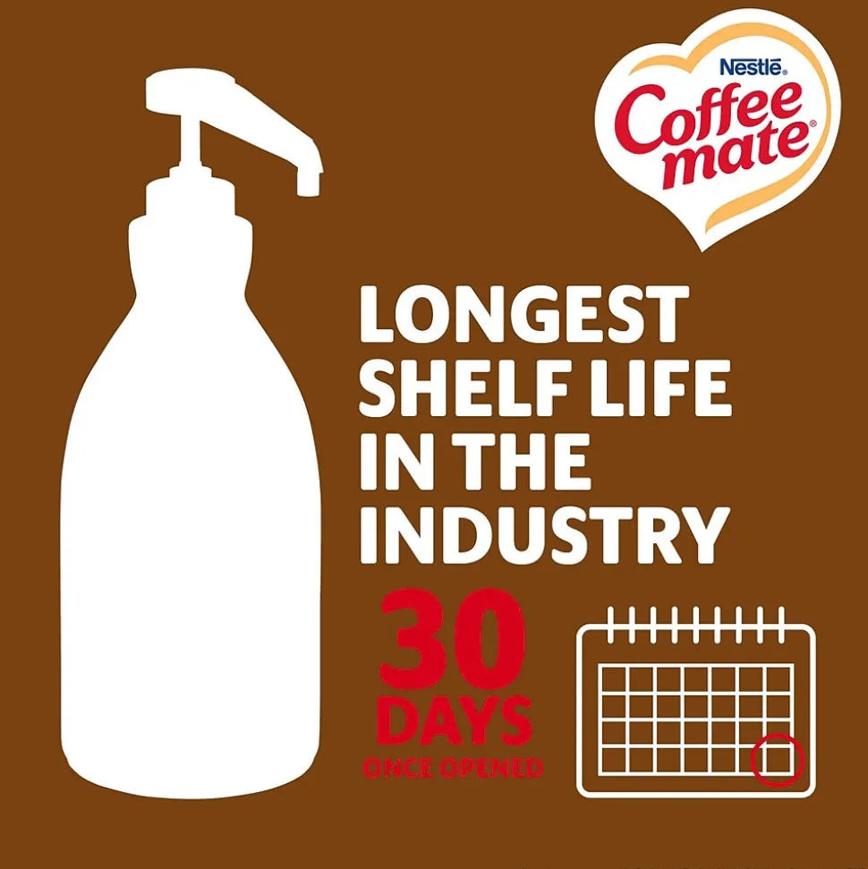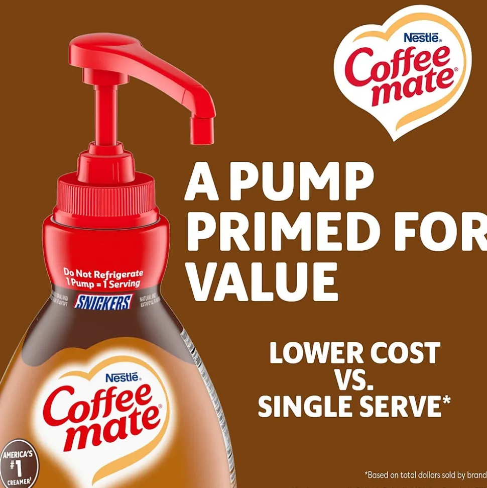 Coffee mate, America’s number one creamer brand, brings you the liquid coffee creamer with the delicious flavor of Snickers. The rich blend of chocolate, nut, and caramel flavors will enhance your cup of coffee and delight your guests. Great for use in self-serve coffee stations, the Coffee mate pump bottle is the perfect, easy-to-use solution for your customers. It’s also easy to clean, requires no refrigeration, and reduces waste with 300 servings per pump bottle.