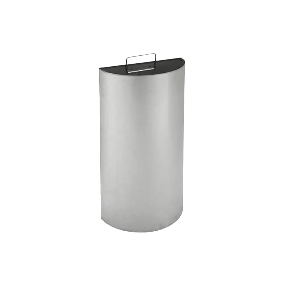 Save space and elevate your environment with this half-moon stainless steel waste receptacle. It fits well next to desks and elevators or within lobbies. The bottom-mounted rubber base ring keeps this unit in place, preventing tipping and protecting floors.