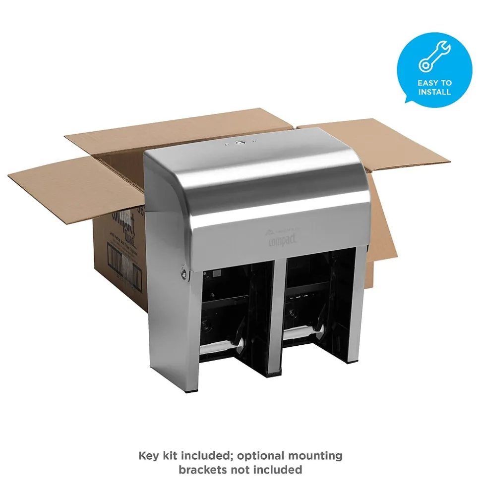 Compact coreless toilet paper dispensing systems answer key needs for facilities managers when it comes to toilet paper for the restrooms. These high capacity systems help you avoid running out between service intervals and help reduce maintenance time typically spent changing out conventional toilet paper rolls. These systems save up to 95% in packaging waste compared to standard roll toilet paper by eliminating stub-rolls, corrugate cores, paper roll wraps and the outer cardboard shipping case. And because the Compact case has a smaller footprint, it requires less storage space. Compact coreless toilet paper dispensers are designed to give the facility high capacity for continuous service. GP PRO is a division of Georgia-Pacific consumer products. We deliver well-designed, durable and easy-to-maintain professional solutions to meet the handwashing and cleaning needs for a range of business applications.