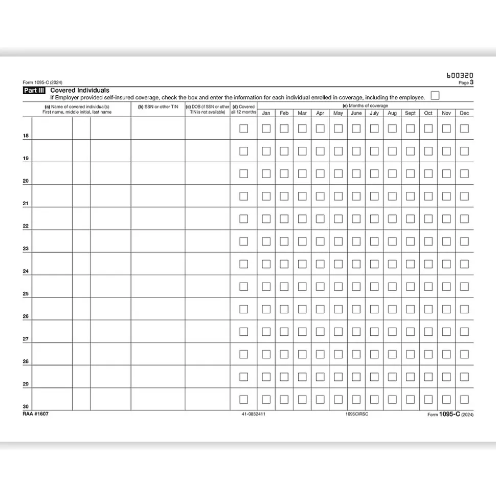| Tax Form Pack Size | 1095-C |