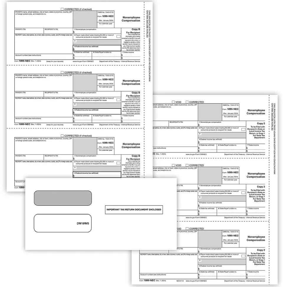 The ComplyRight 1099-NEC recipient-only tax form is designed for organizations that will be required to e-file and therefore will not need Copy A or transmittal forms 1096 or W-3.