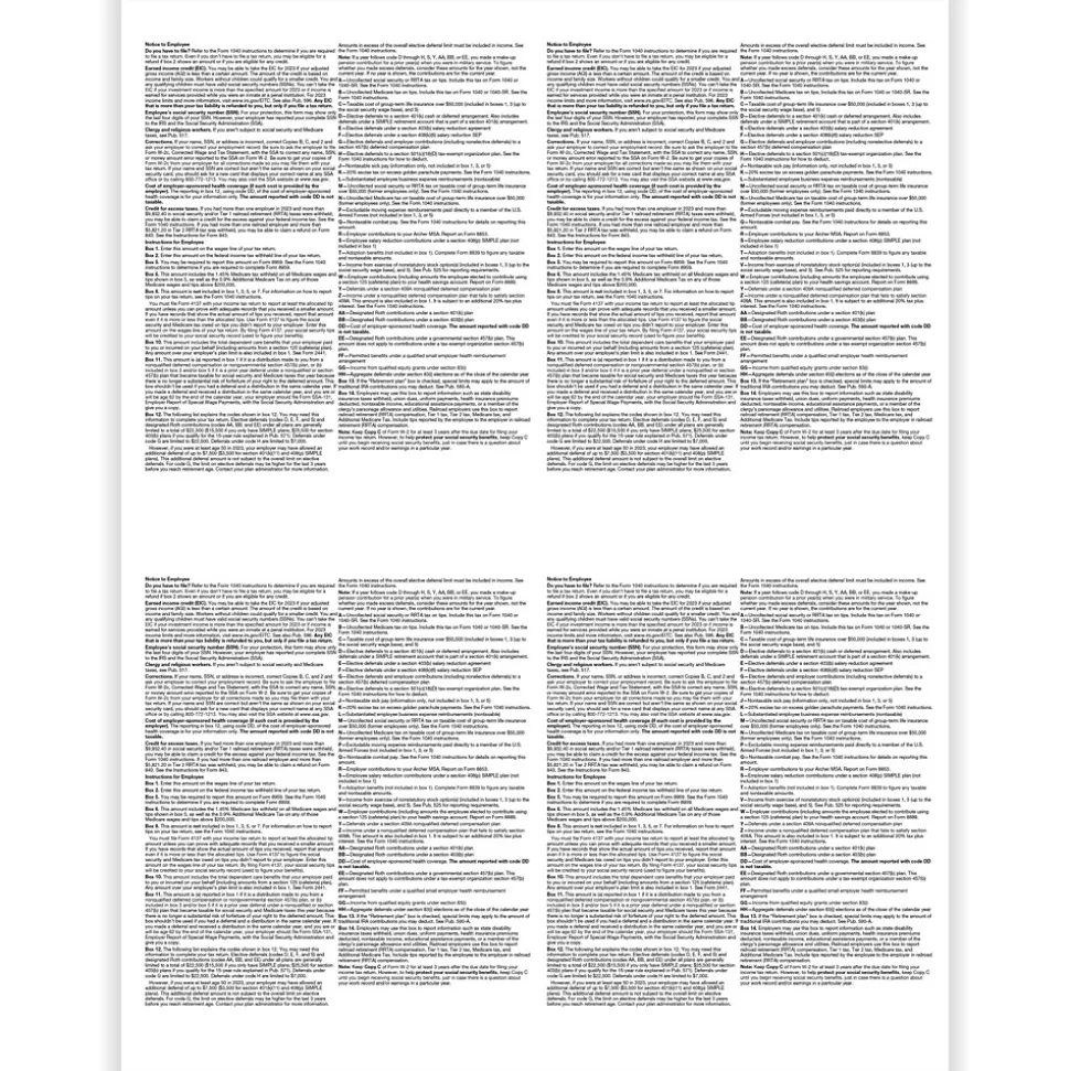 - W-2 employee four-up box blank with backer cut sheet
