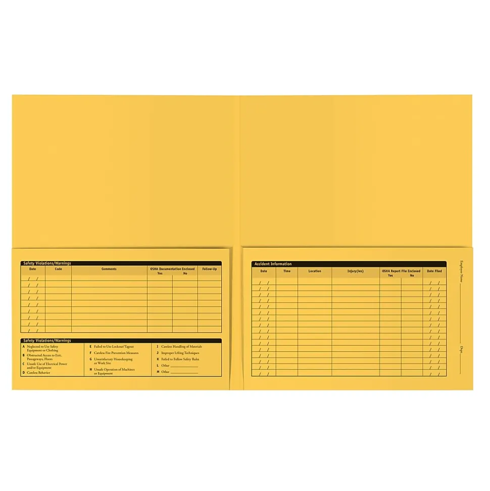 - Extended tab on folder and distinct yellow color helps easily locate employees from file cabinets