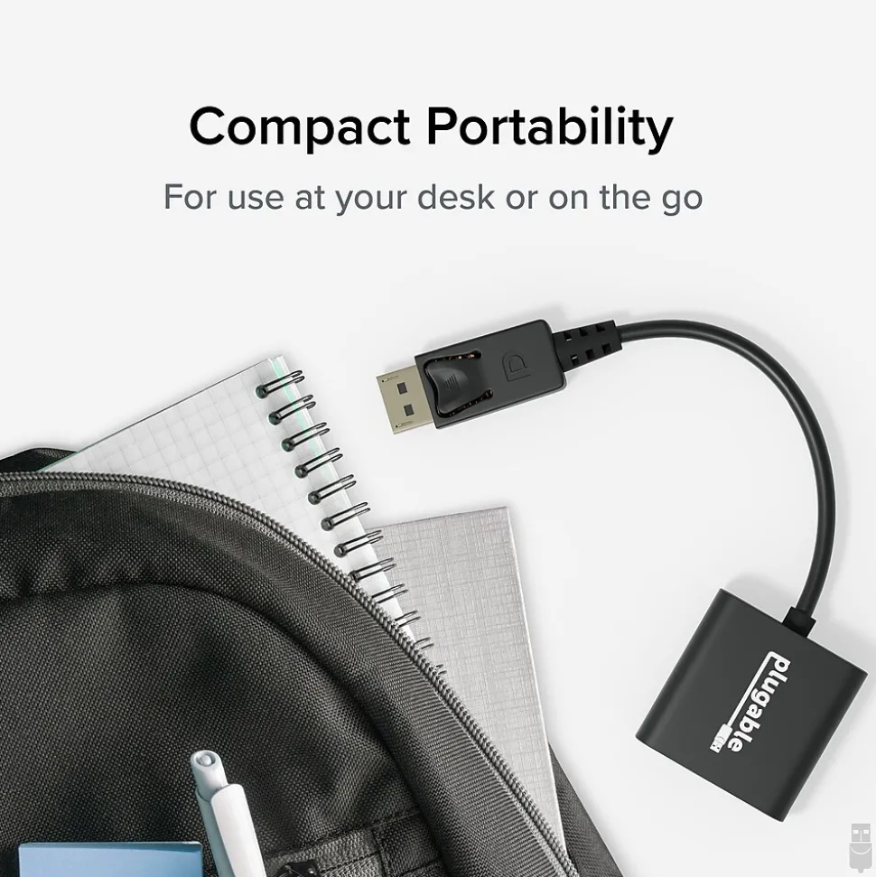 The Comprehensive® DisplayPort male to VGA female adapter transmits data at a data transfer speed up to 10.8 Gb/s. It supports resolutions up to 1920 x 1200 and HDTV resolutions up to 1080p.