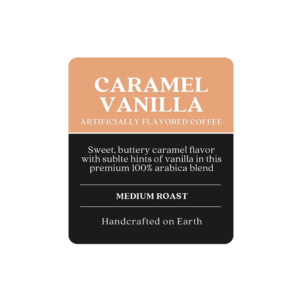 - Medium roast coffee with buttery caramel and subtle vanilla flavoring