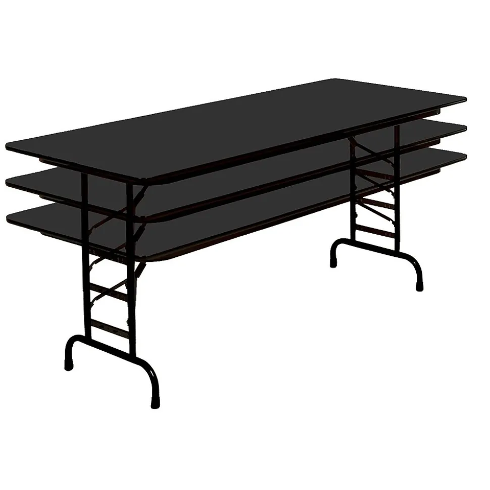 Correll Metal, Particle Board & Laminate Adjustable Black Granite Folding Table is designed with a sturdy metal frame that allows greater stability. It is resistant against humidity and warping.