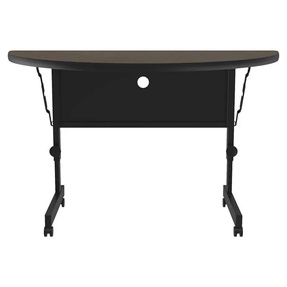 This mobile nesting option allows for easy fold-up and compact storage. The design allows for easy setup, configuration, take-down, and storage. Ideal for heavy-duty use in schools, universities, offices, hotels, training rooms, and conference areas. The thermal fused laminate top is water-, stain-, and dent-resistant.