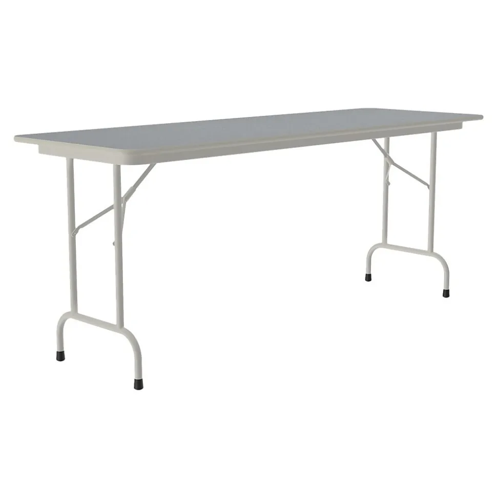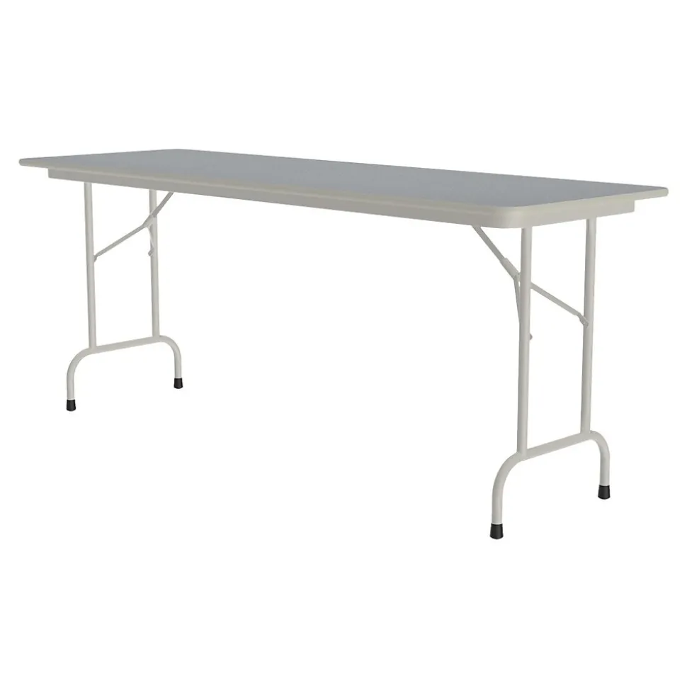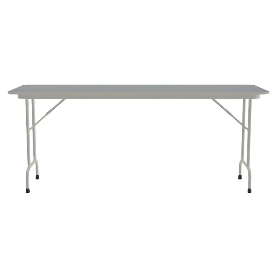 The Correll folding table is durable for heavy-duty home, office, school, church, food service, and commercial use. Its thermal-fused laminate top is water-, stain-, and dent-resistant. The table folds for portability and storage space.