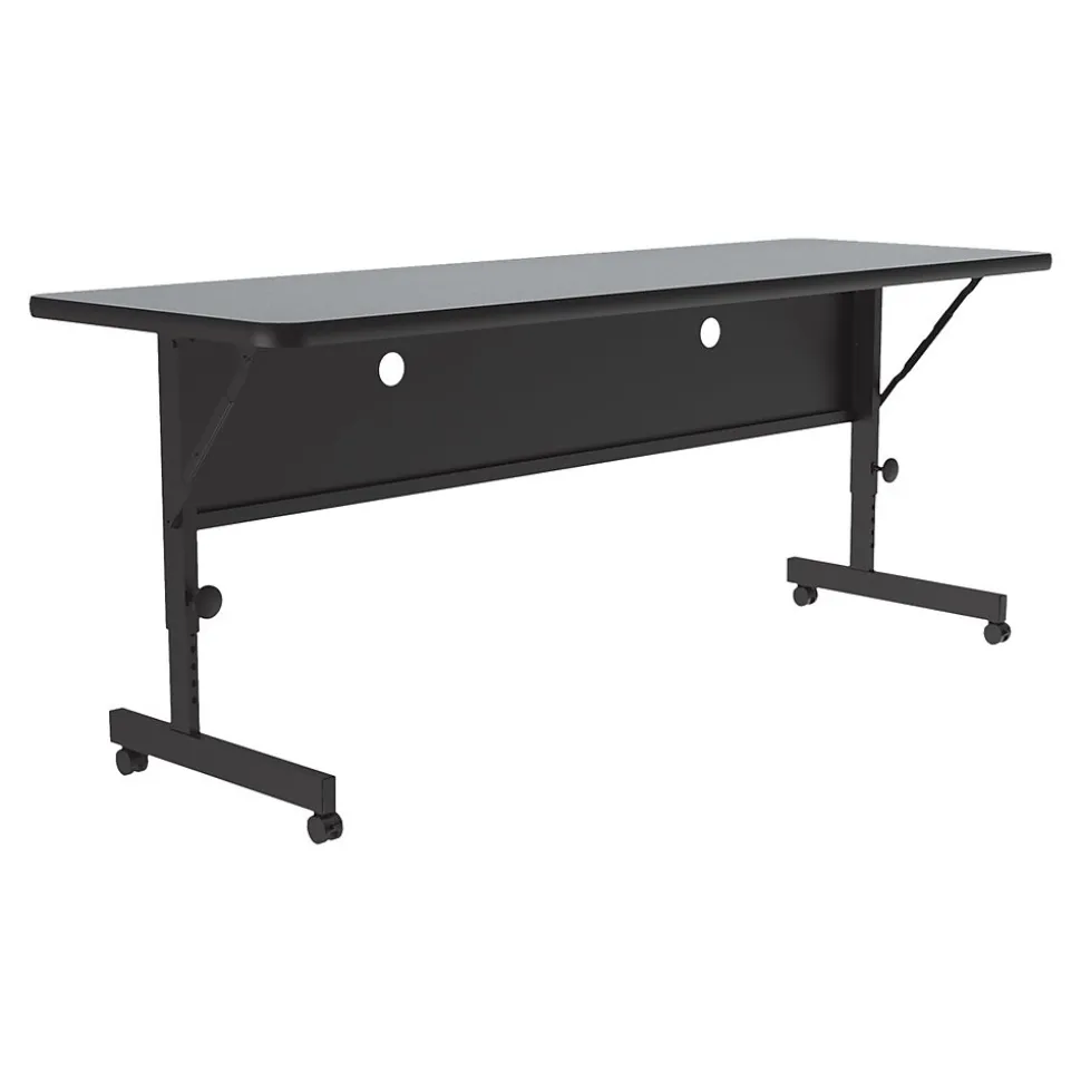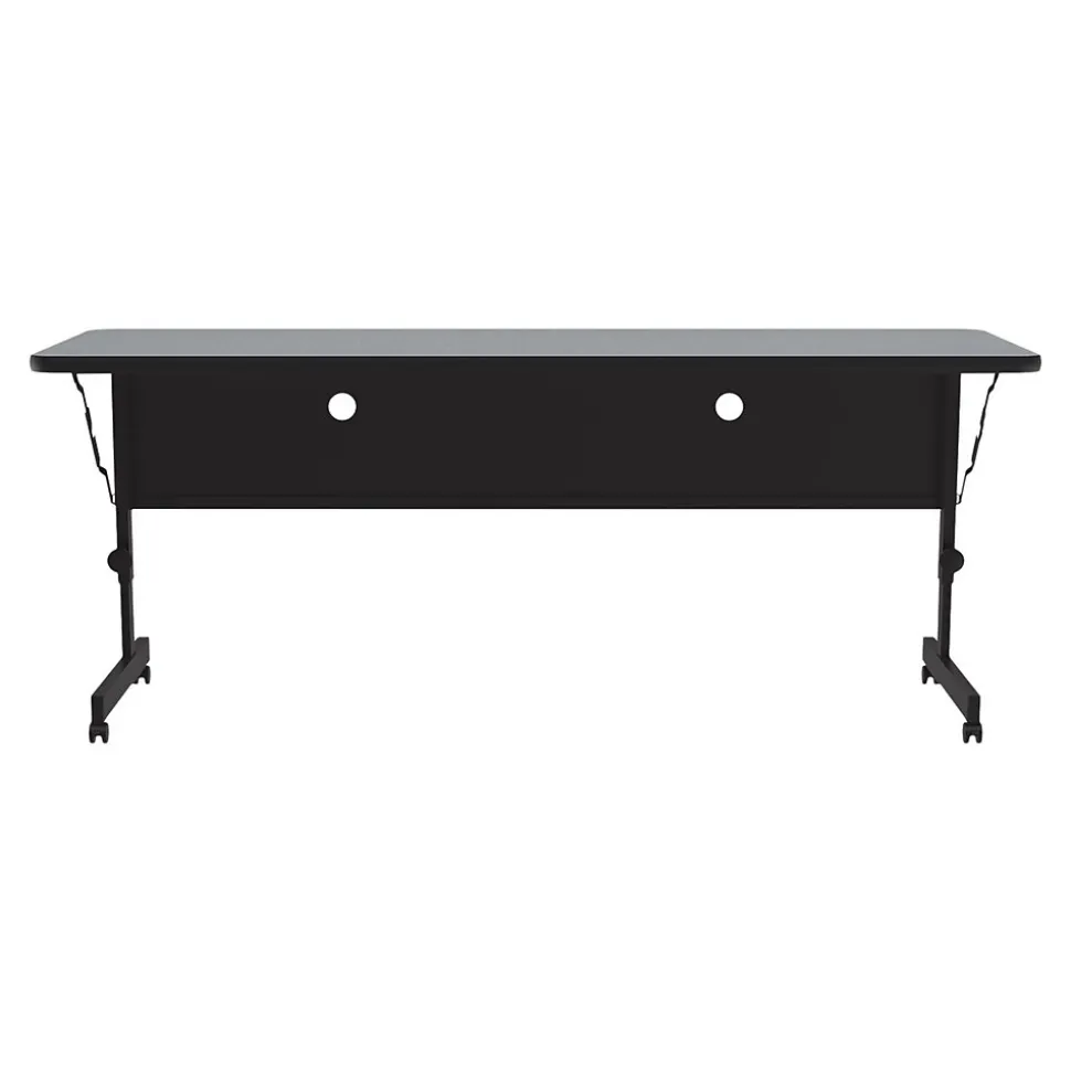 This mobile nesting option allows for easy fold-up and compact storage. The design allows for easy setup, configuration, take-down, and storage. Ideal for heavy-duty use in schools, universities, offices, hotels, training rooms, and conference areas. The thermal fused laminate top is water-, stain-, and dent-resistant.