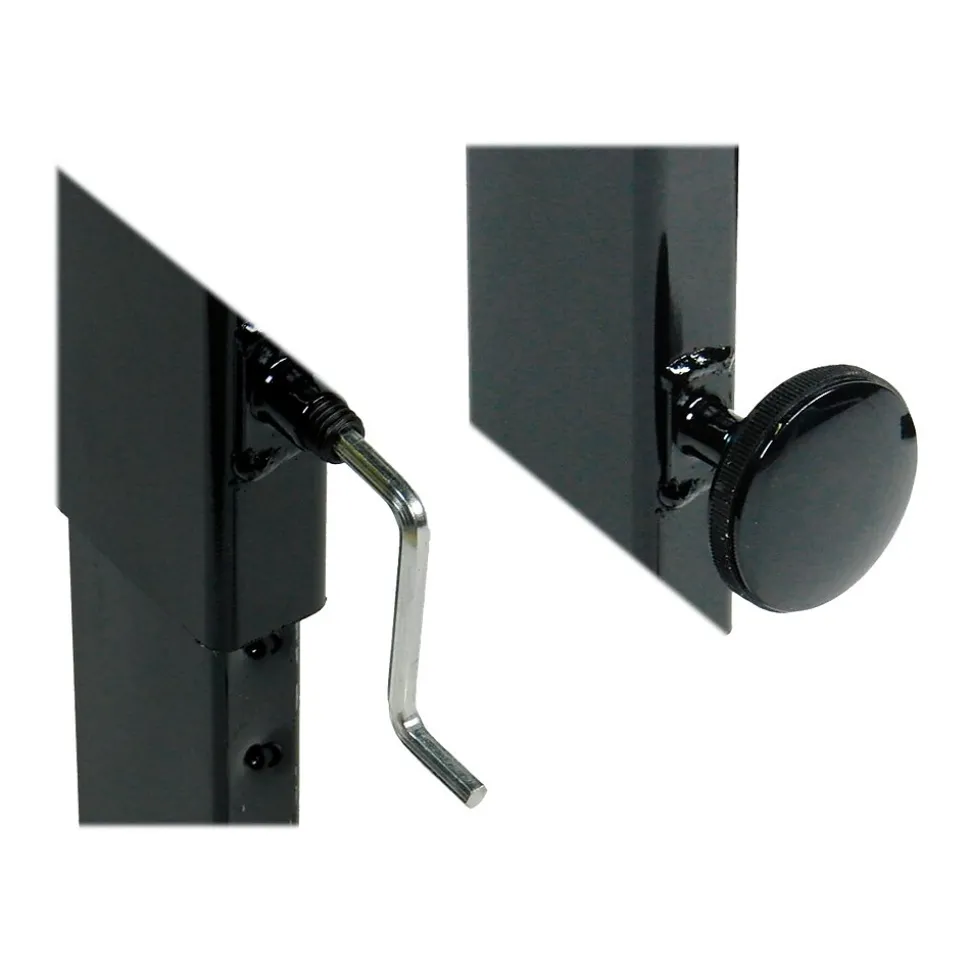 - Comes with two large, easy-to-use height-adjustment knobs for fast height changes, and a set of screws (with a wrench) for maximum tamper resistance