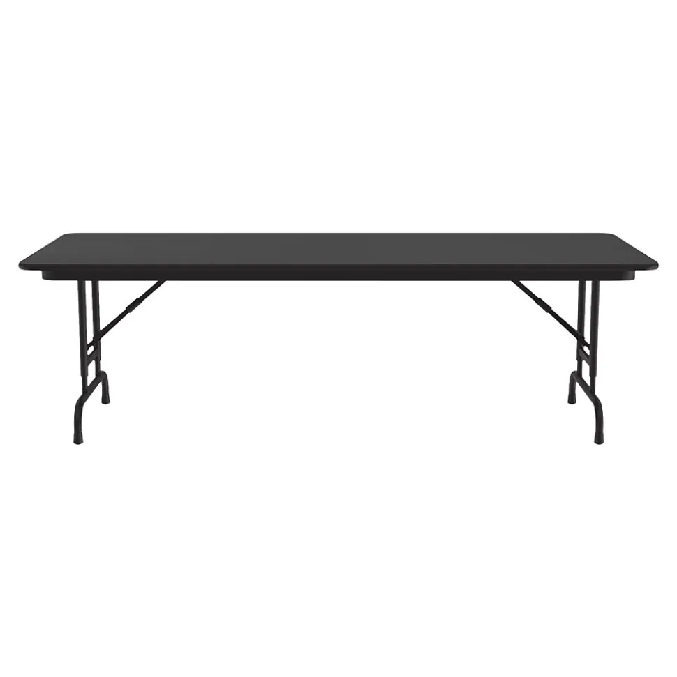The Correll folding table is durable for heavy-duty home, office, school, church, food service, and commercial use. Its thermal-fused laminate top is water-, stain-, and dent-resistant. The table folds for portability and storage space.