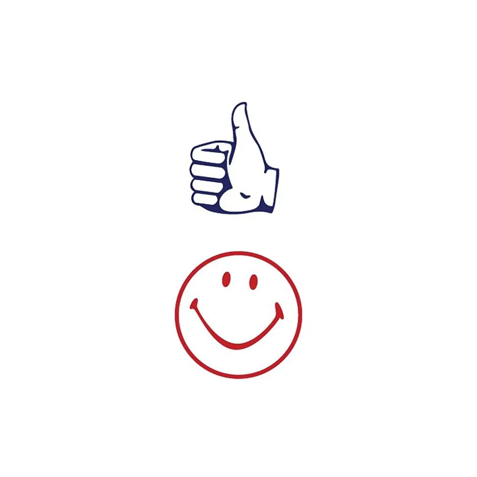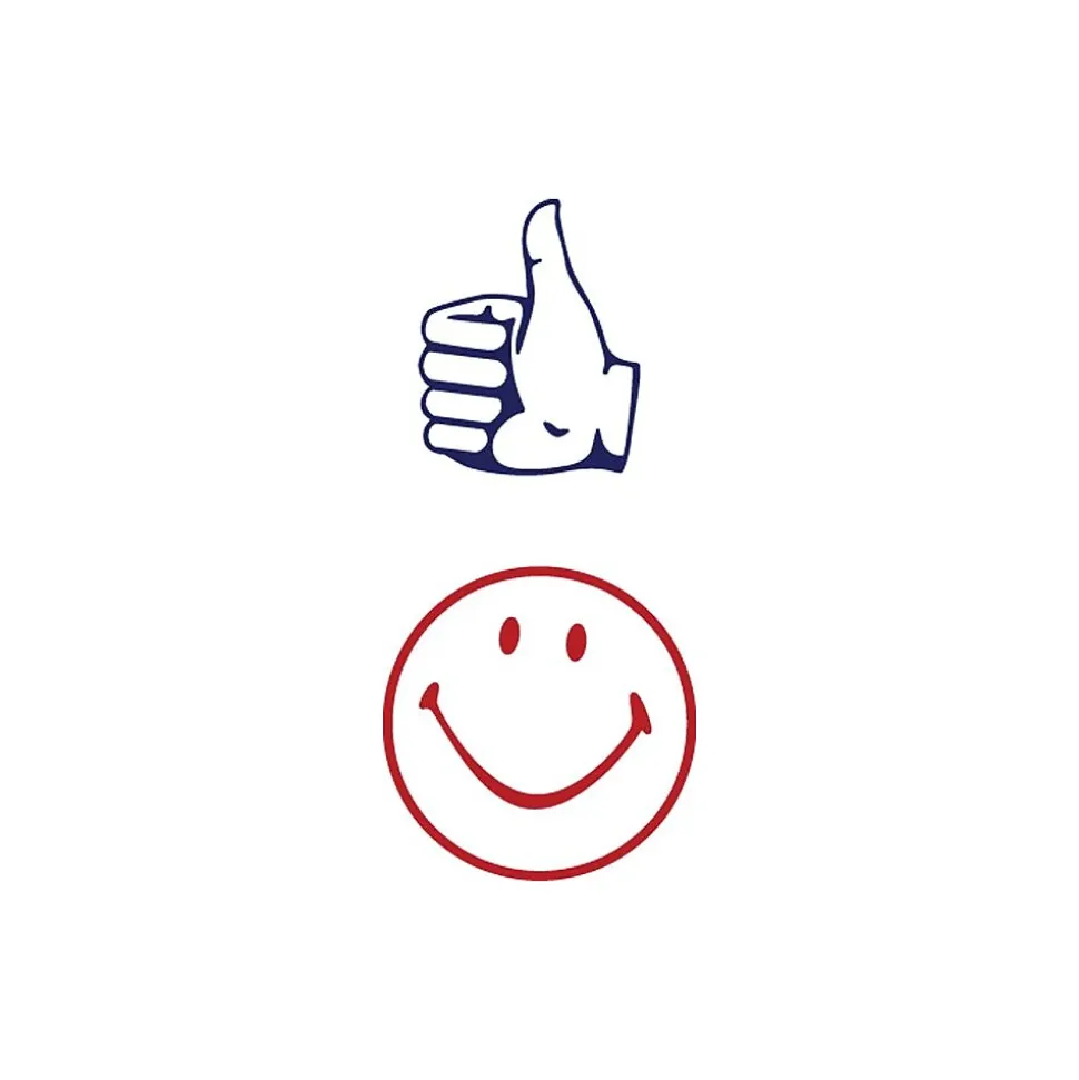 Cosco Accu-stamp Dual Message Round Stamp, Thumbs Up/Smiley, Red/Blue Ink (032934)