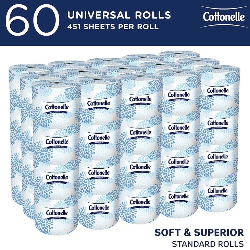 - 451 Sheets/Roll, 60 Cottonelle® Professional Standard Roll Toilet Paper Rolls/Case; 27,060 Sheets/Case; 2-Ply; White