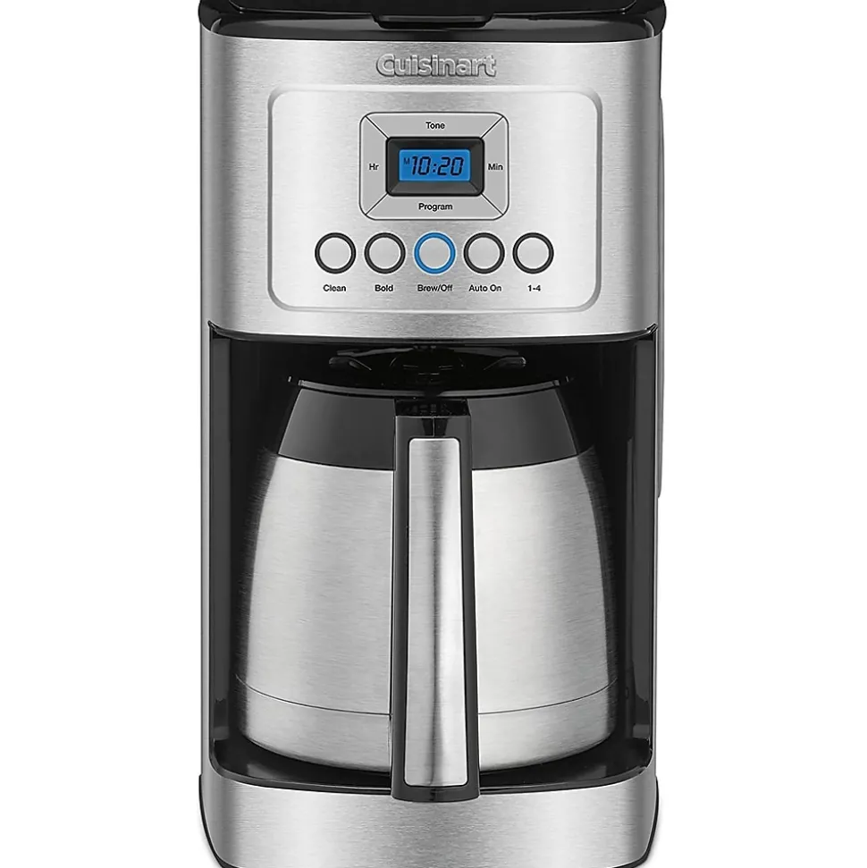 Hotter coffee and brew strength options – the best of both worlds! The Cuisinart 12 Cup Programmable Thermal Coffeemaker is equipped with cutting edge coffee technology to give you hotter coffee without sacrificing taste. Choose a flavor profile with regular or bold strength control, and set brew-time up to 24-hours ahead. Our backlit LCD is easy-to-read, a ready tone can be turned on or off, and an indicator light signals when it’s time to decalcify.