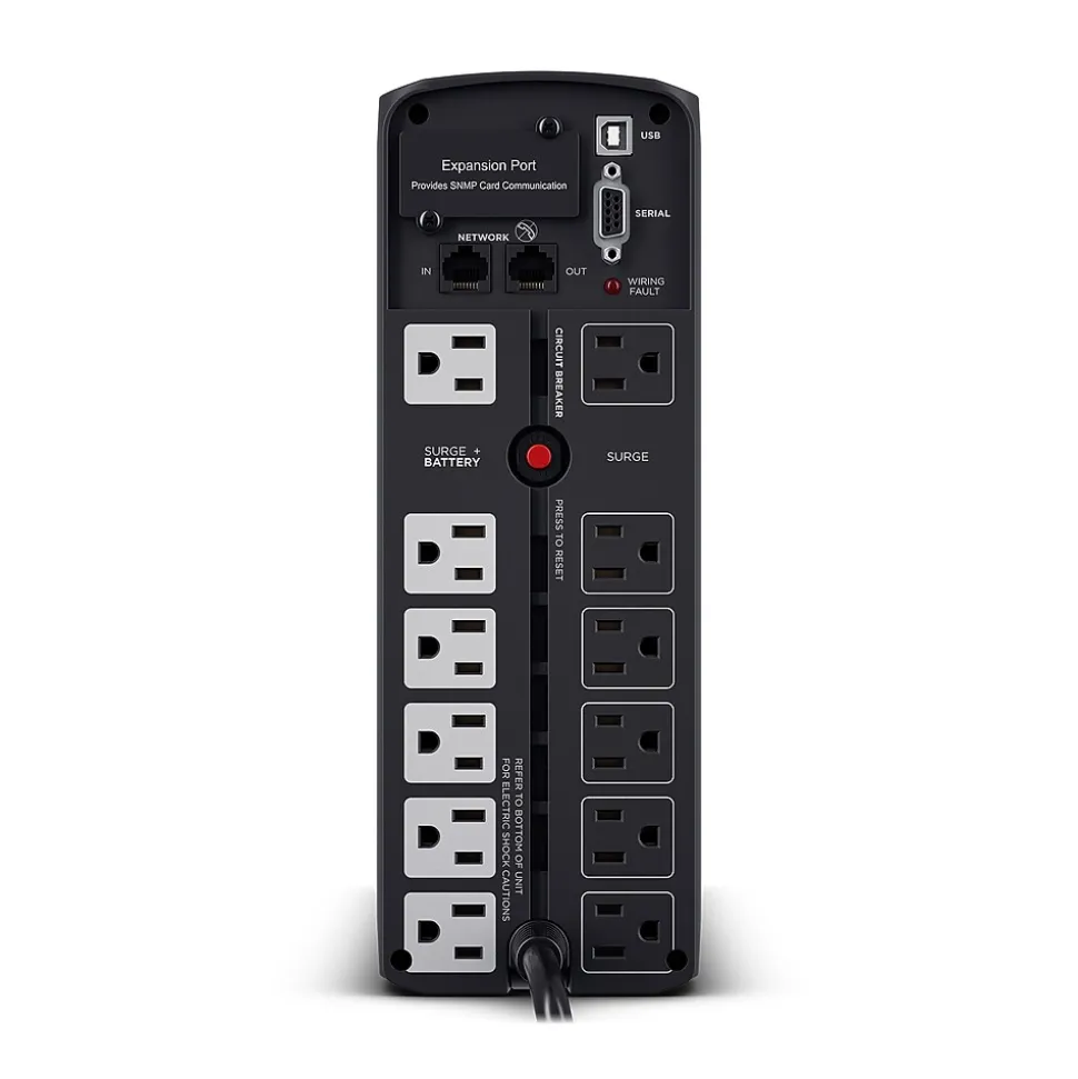 - Equipped with 12 surge-protected outlets for seamless connectivity (6 battery-connected)