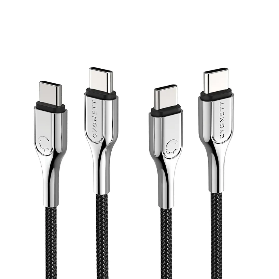 The 6 ft. Cygnett Armored USB-C to USB-C Cable supports higher levels of power, up to 5 amps/100 watts of turbo charging, so you can power-up your USB-C laptop, tablet, or smartphone at breakneck speed. It allows you to experience up 480 Mbps transfer speeds so you can quickly sync your photos, music, and data to your existing USB-C enabled device. Elongated cable connectors forged from a metallic alloy provide a refined aesthetic, strength, durability and superior scratch resistance. The robust cable design the exterior double braiding allows the cable to resist abrasion while maintaining flexibility for ease of use. The cable connectors forged from a metallic alloy provide a refined aesthetic and superior scratch resistance.