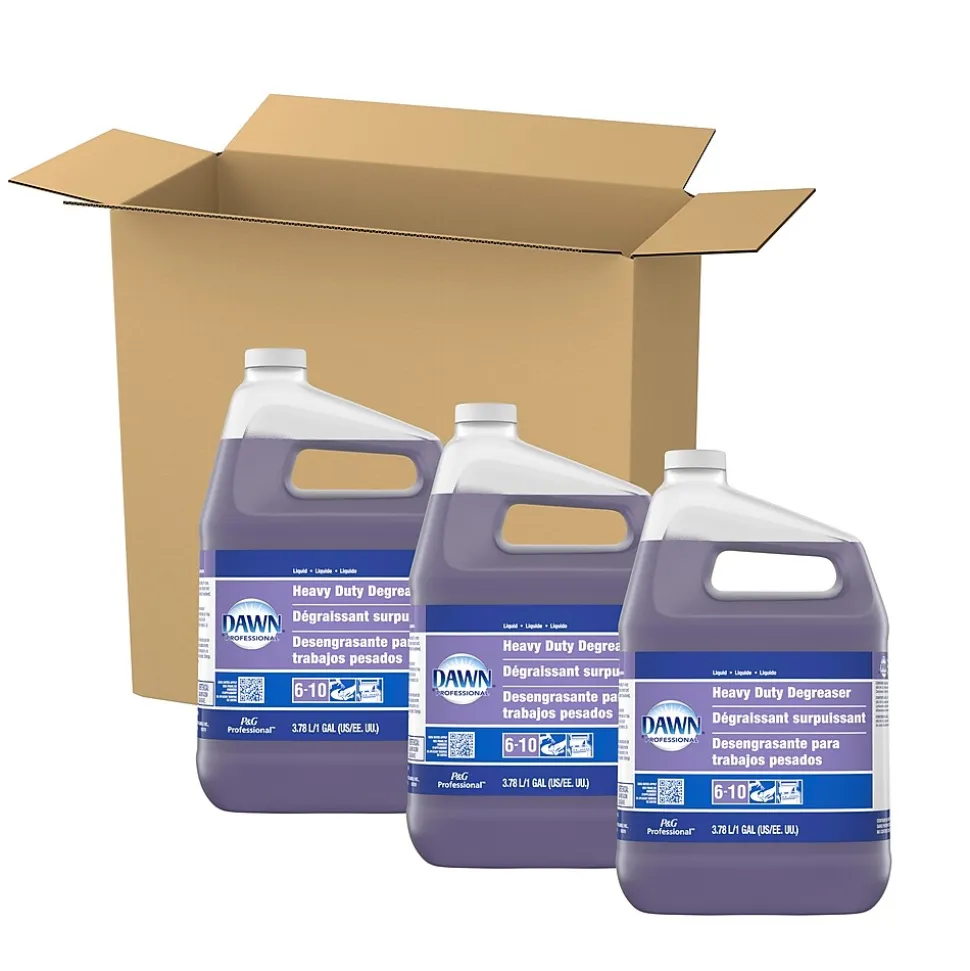 Dawn Heavy Duty Degreaser cuts through tough jobs with the grease-cutting power of Dawn. This industrial degreaser is designed to clean your toughest grease problems. It can be used full strength as a multi surface cleaner on buildup on range hoods, fryers, ovens and walls. It is safe for use on food-contact surfaces when followed by rinsing with water. Dawn degreaser is excellent for cleaning corral areas and dumpsters and can even be used for cleaning heavy crank case oil from concrete drive-thru pads and sidewalks. This Dawn Professional product is phosphate-free, noncaustic, nonflammable, and formulated for employee safety. It’s also designed to clean waxed tile floors without damaging the wax, when properly diluted, and can spot-clean where heavy grease buildup exists.
