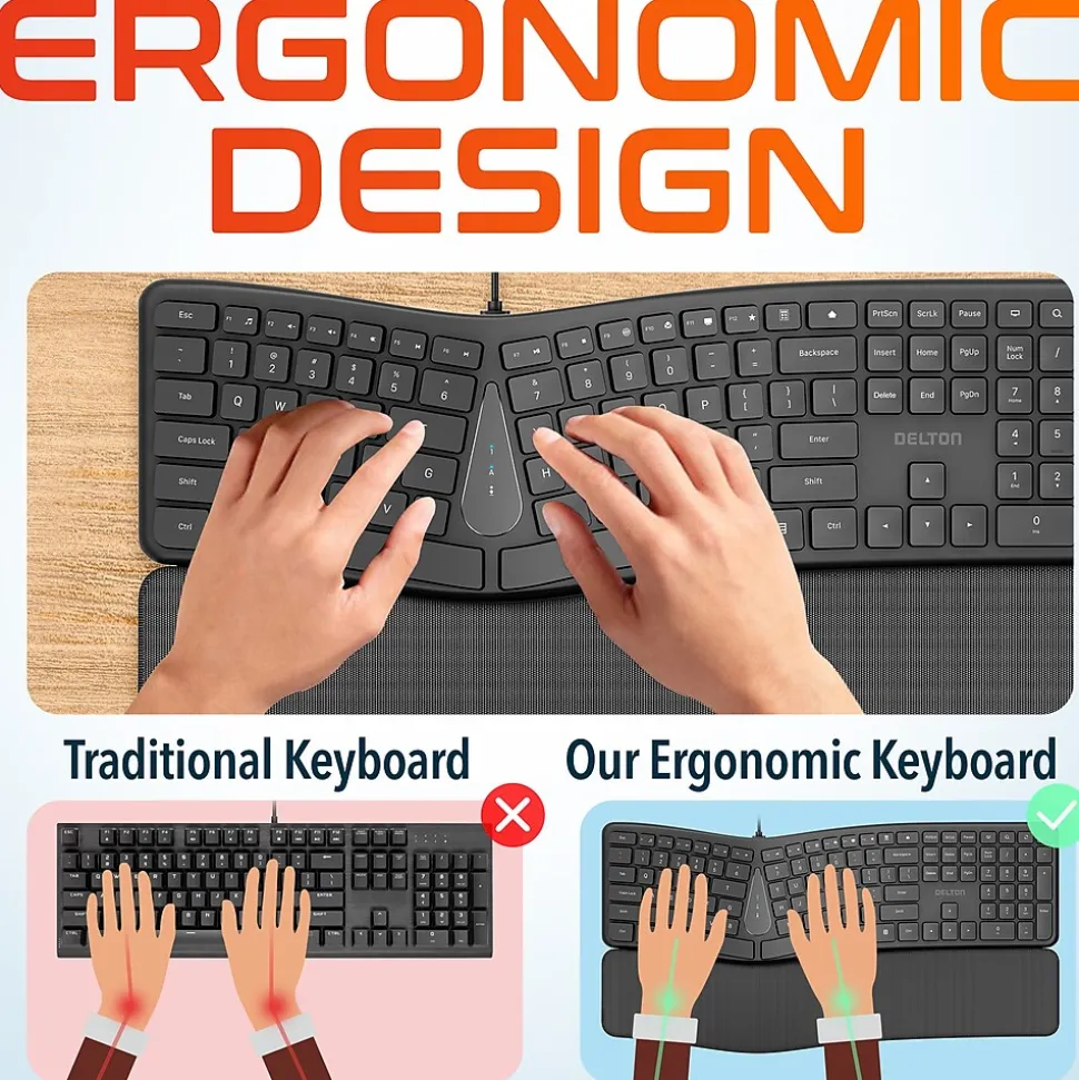 - This wired ergonomic keyboard is meticulously engineered to ensure exceptional durability and long-lasting comfort