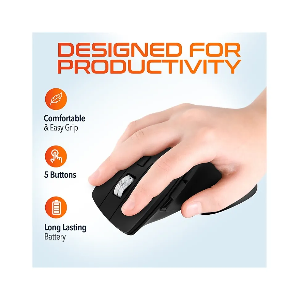Experience the ultimate combination of convenience, functionality, and longevity with the Delton S18 wireless ergonomic mouse, the wireless mouse that delivers exceptional performance while preserving battery life, revolutionizing the way you interact with your devices. With an ergonomically sculpted body crafted to support your palm and fingers to reduce strain, the S18 is perfect when productivity and performance matter. The next-generation optical mouse sensor on the S18 offers responsiveness on nearly any surface and delivers remarkable speed and precision. Say goodbye to tangled wires and welcome an era of productivity and comfort with the S18 computer mouse.