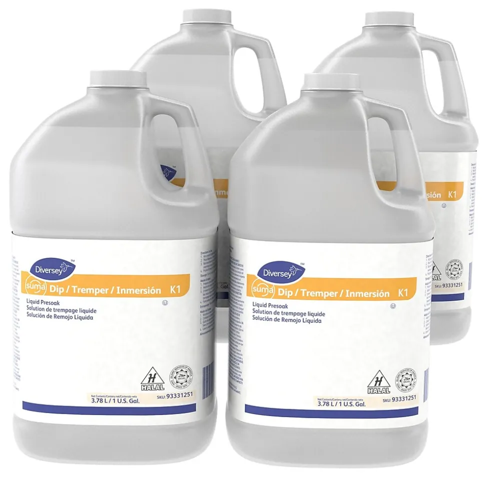 Take on tough commercial food service cleaning with this concentrated presoak liquid, which is ideal for large dishwashing loads. Formulated to remove the tannin stains caused by coffee and tea, this liquid is alkaline-chlorinated so it’s safe on stainless steel and aluminum while doing a thorough job. Diversey Suma Dip K1 liquid is effective on china, breaking down caked-on food.