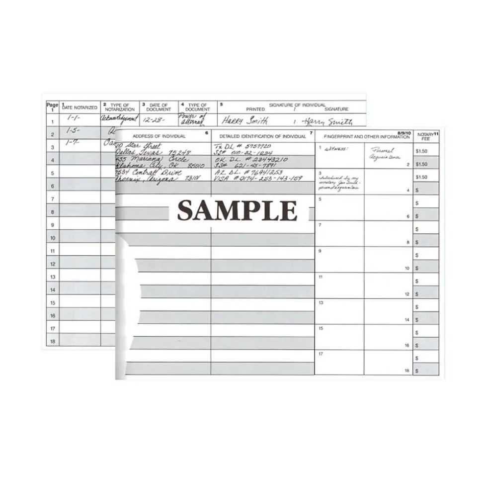 - Record of: date and type of document, name and signature, witness, address, fee charged, and other pertinent information