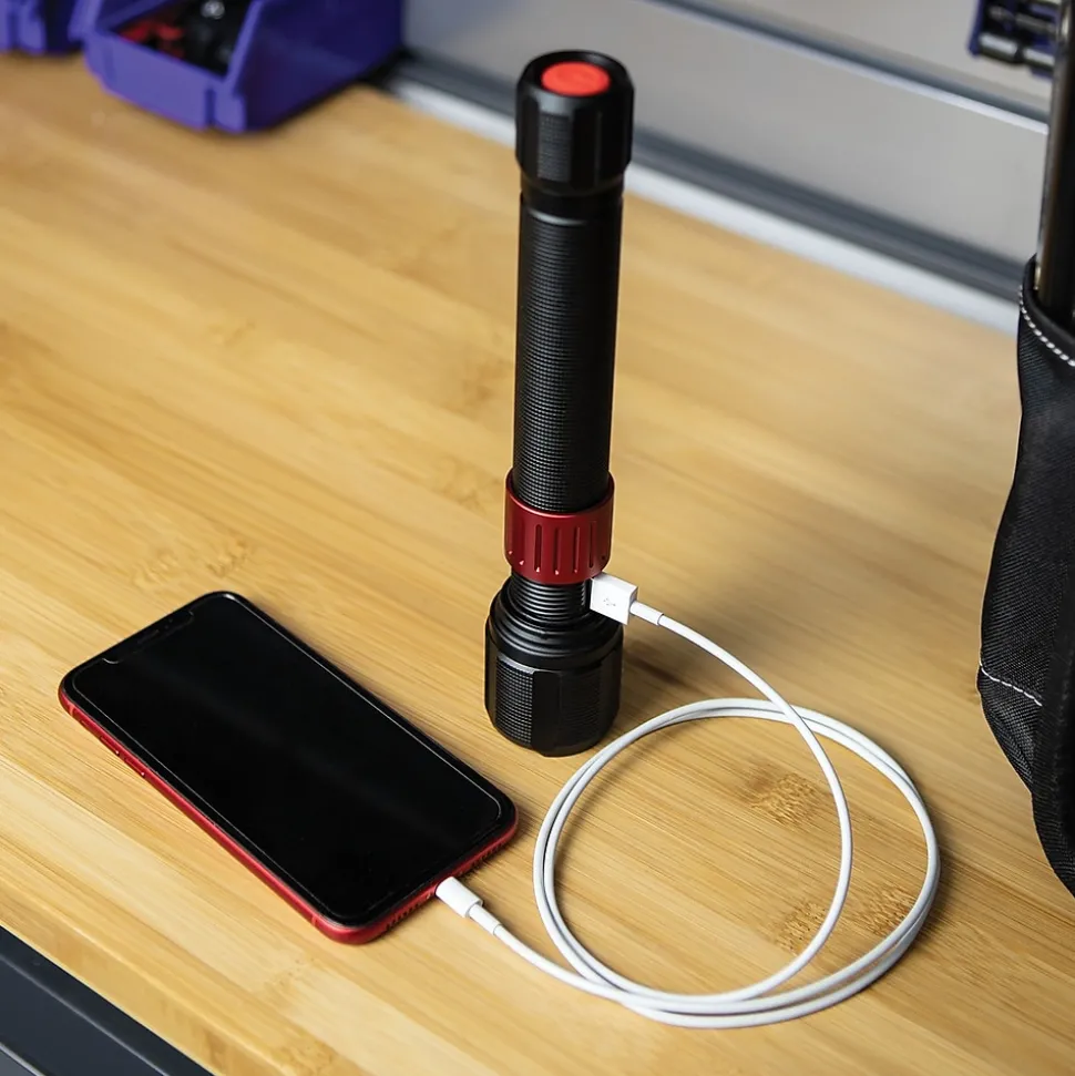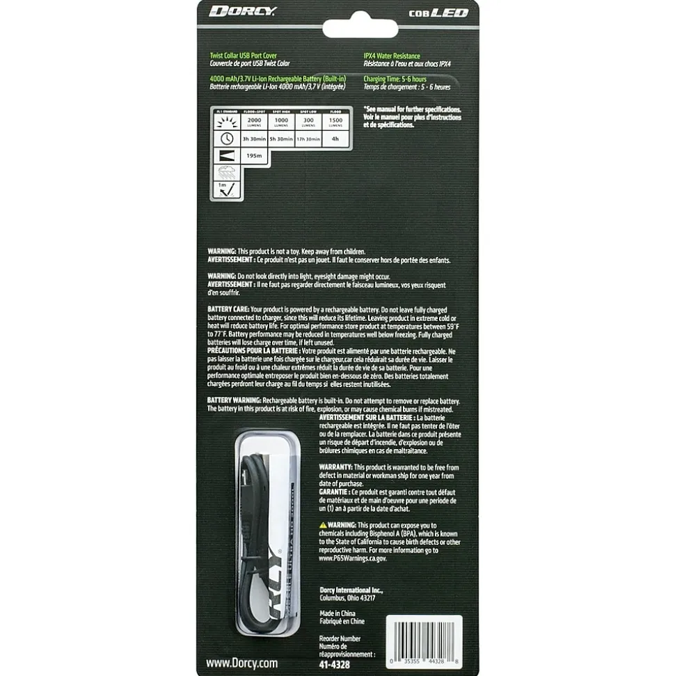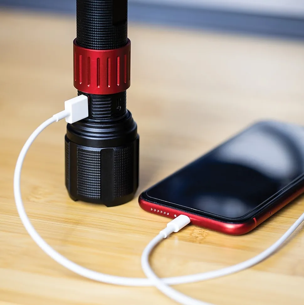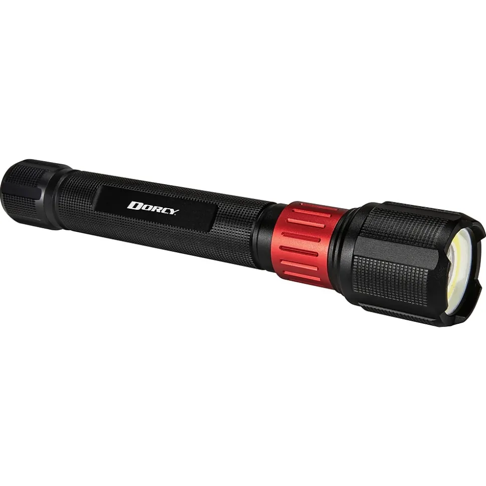 The Dorcy 2,000 Lumen USB Rechargeable Flashlight with Powerbank has instant spot and COB flood lights and features an intense beam of light that projects out to 639 ft. Constructed of durable, aircraft-grade anodized aluminum, this light contains 4,000 mAh of Li-Ion battery power for extended run times. Other features include rechargeability via USB, powerbank functionality, and a recessed tail cap. With multiple light output modes, you can be in control of the beam, brightness, and run time. Use this in your house or outdoors.