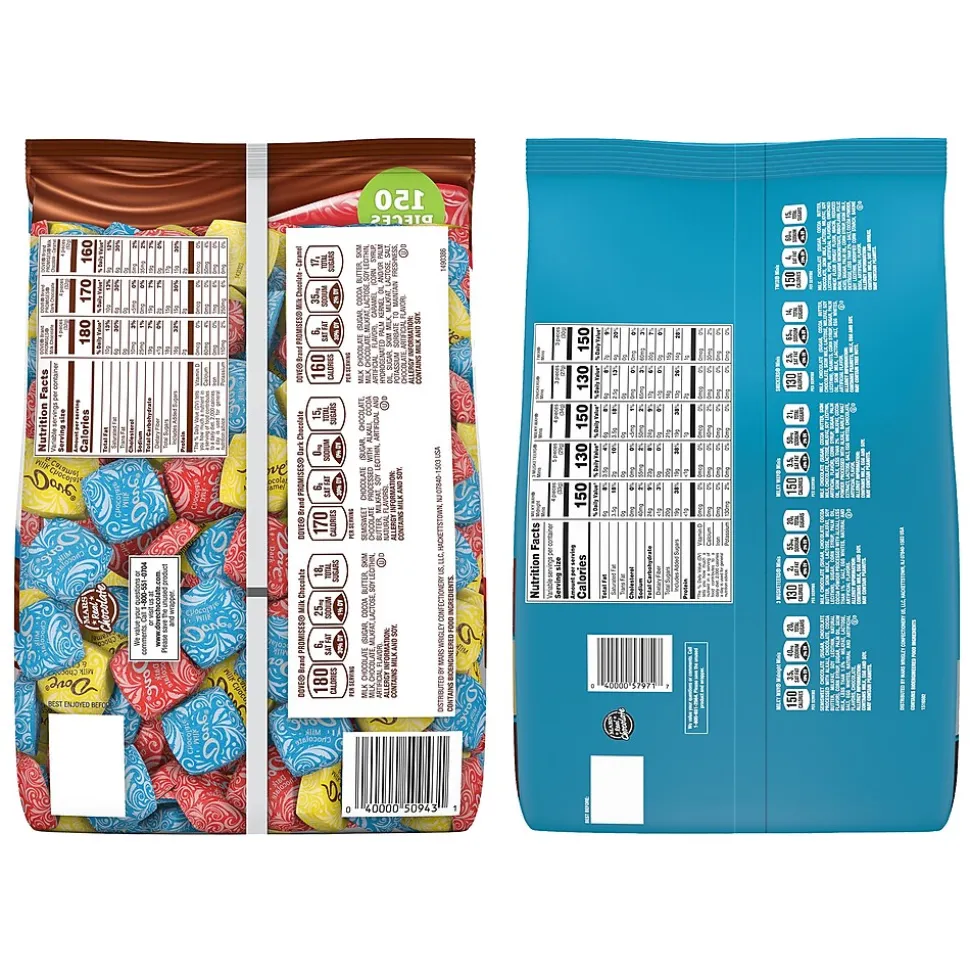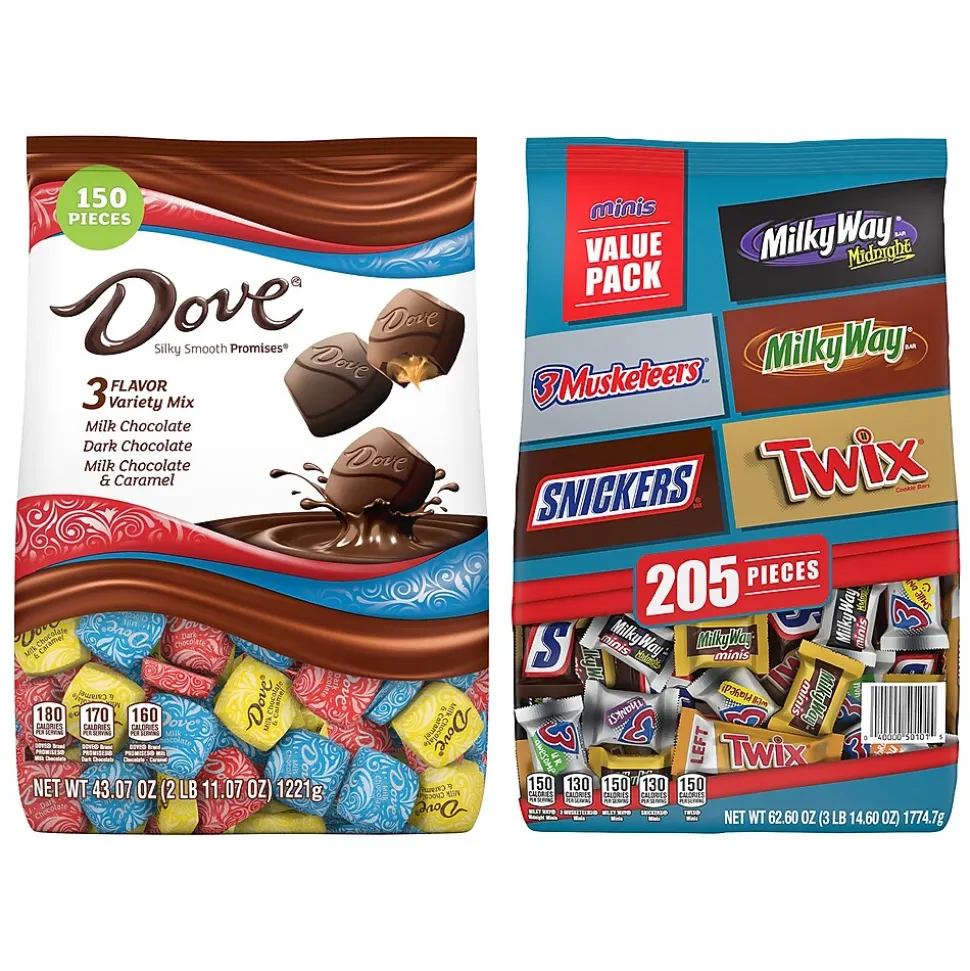 DOVE PROMISES Variety Mix Chocolate Candy Chocolate Candy Bulk Variety Pack (Dark Chocolate, Milk Chocolate, and Caramel), 43.07-Ounce, 150-Piece Bag and MARS Chocolate Favorites Minis Size Candy Bars Assorted Variety Mix Bag (MILKY WAY Midnight, MILKY WAY Original, 3 MUSKETEERS, SNICKERS and TWIX Chocolate Bars), 62.6 oz, 205 Pieces