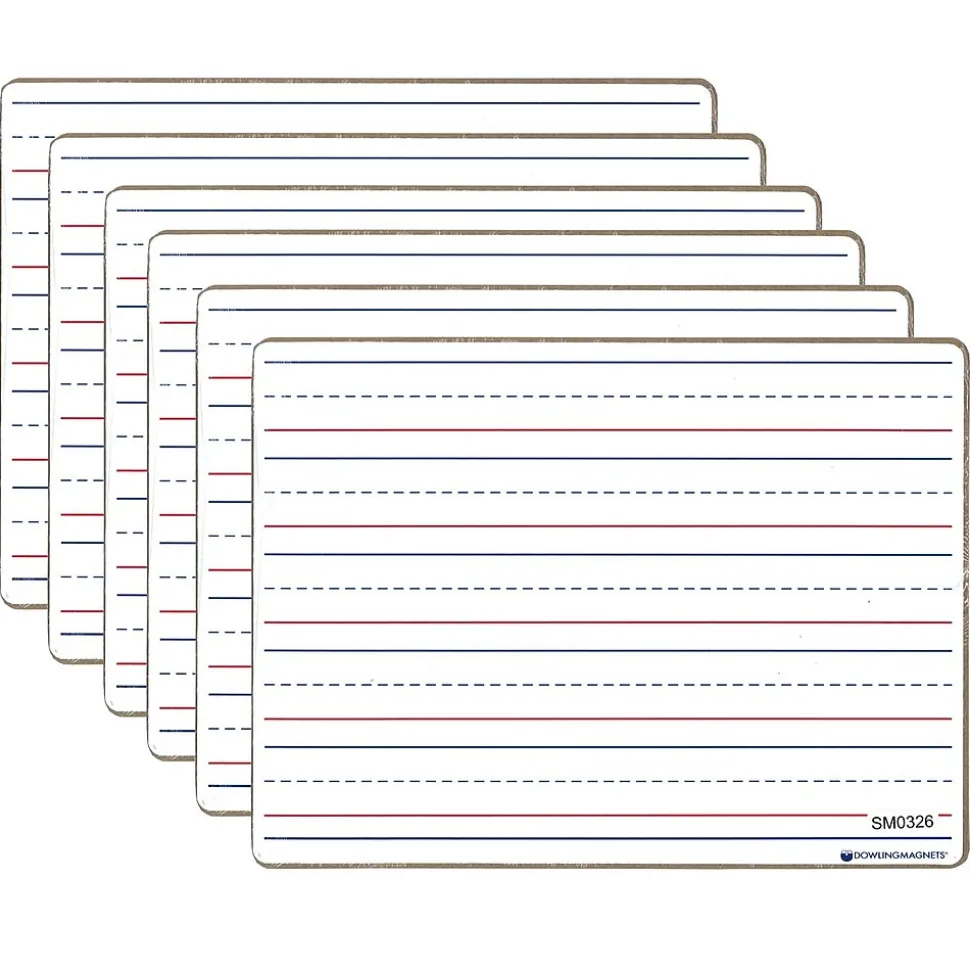 Twice the workspace – double-sided! Slim size and impressive durability make these ideal for student use. Pair with magnetic manipulatives and dry-erase markers (sold separately) in classroom centers, at home or for travel. Each magnetic-receptive board measures 12″L x 8.75″W and is Line-Ruled on side and Blank on the other. For Ages 3+/Grades PreK+. Pack of 6 boards.