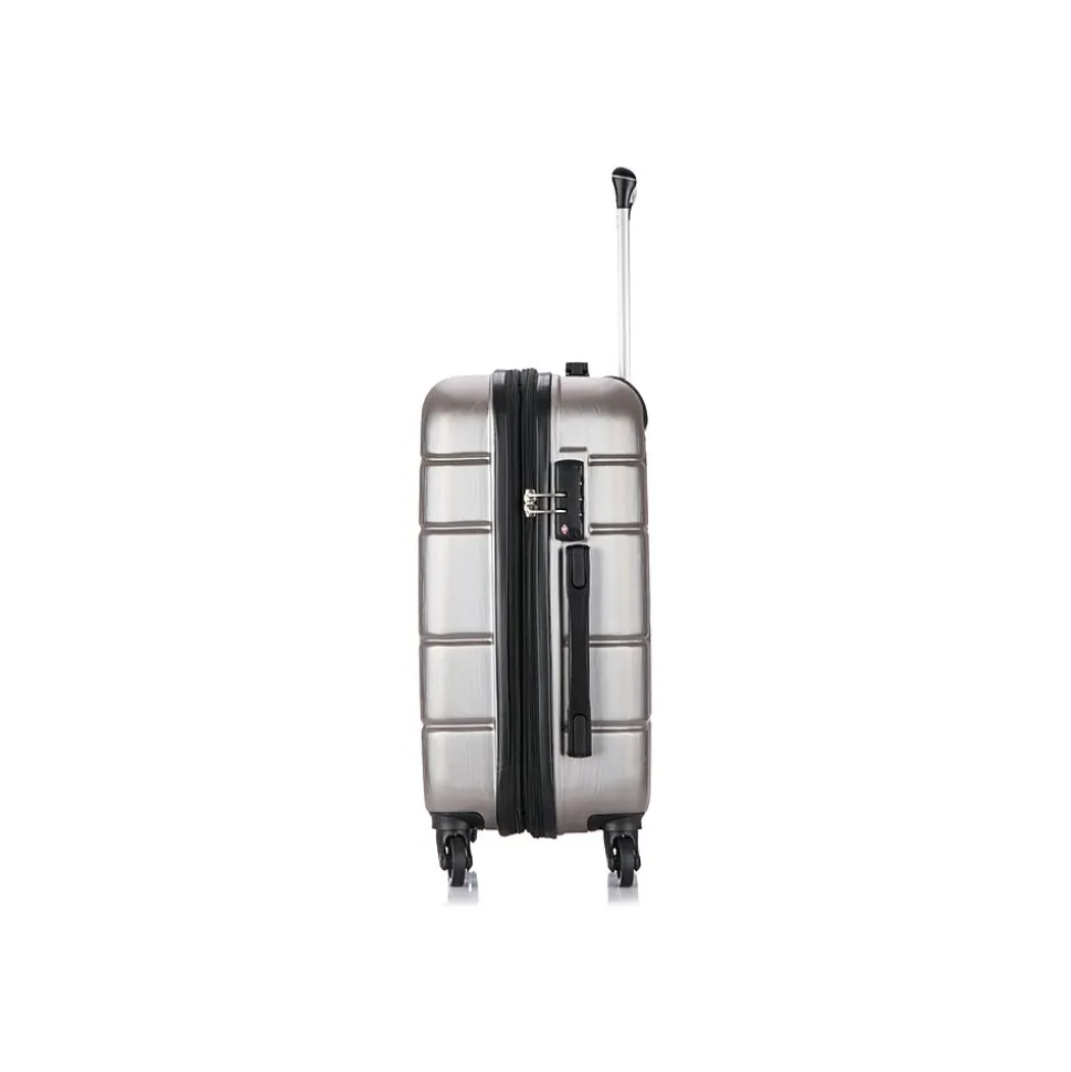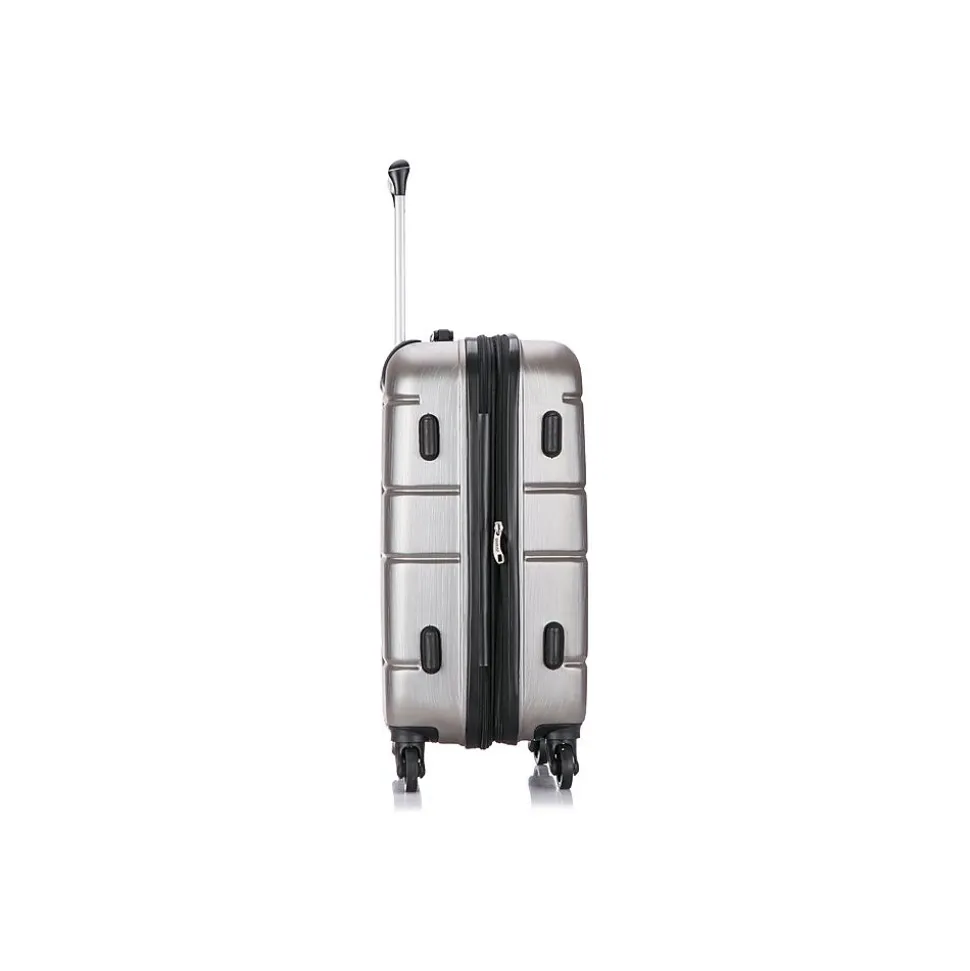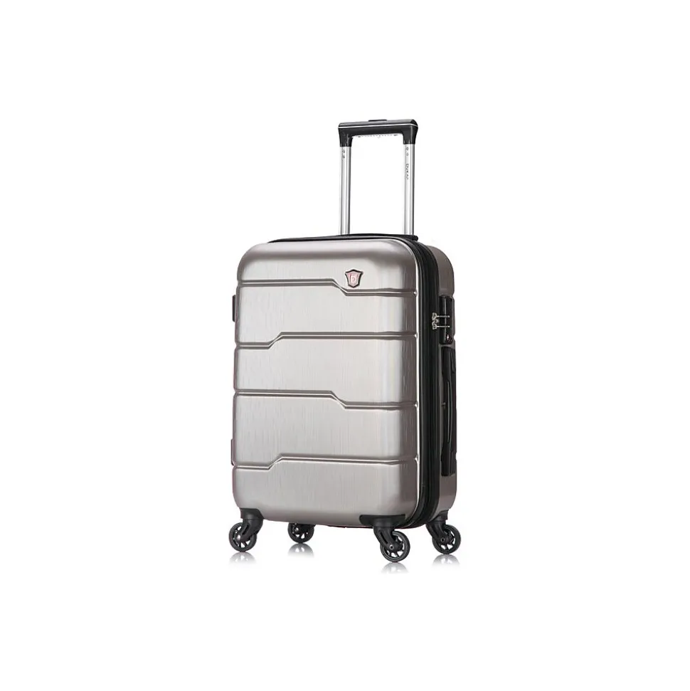 The hard-flex construction of this DUKAP RODEZ carry-on four-wheel spinner luggage offers maximum strength, durability, and a water-/scratch-resistant finish. It features a full interior fabric lining with a zipper compartment on one side and snap-on straps on the opposite side for easy packing, plus one inside pocket for your convenience.