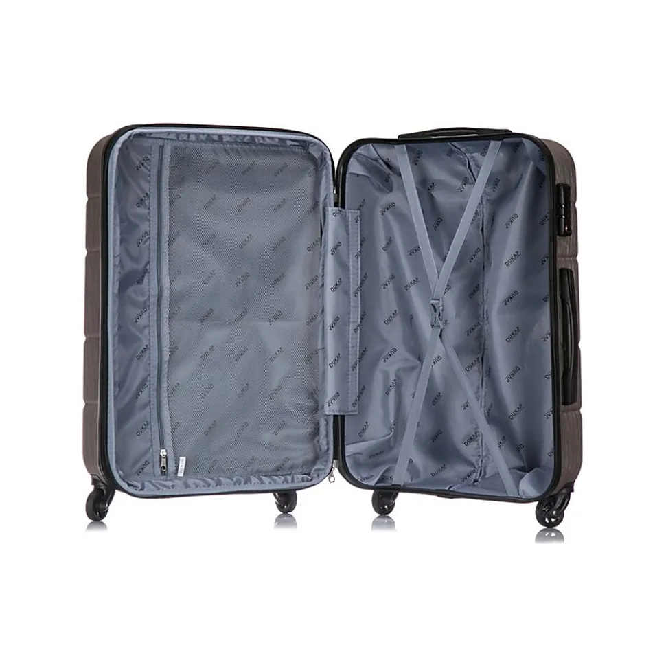 The hard-flex construction of this DUKAP RODEZ luggage set offers maximum strength, durability, and a water-/scratch-resistant finish. It features a full interior fabric lining with a zipper compartment on one side and snap-on straps on the opposite side for easy packing, plus one inside pocket for your convenience.
