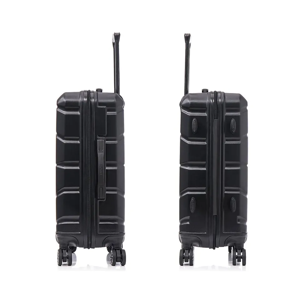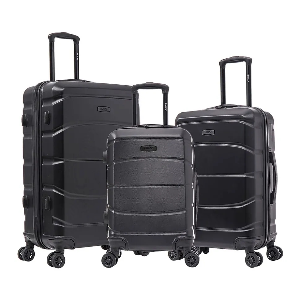 Elevate your travel experience with the complete DUKAP SENSE lightweight hardside spinner luggage set crafted for discerning travelers. Each piece, from the carry-on to the checked bags, is equipped with 360-degree spinner wheels for seamless navigation, ensuring you travel with grace and ease. This set boasts a carry-on and two checked bags for long trips or family travel. Experience a seamless blend of elegance, durability, and functionality with the SENSE luggage set, where every piece is meticulously crafted to elevate your travel experience.