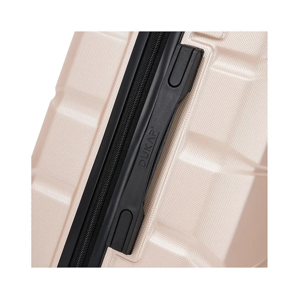 Elevate your travel experience with the complete DUKAP SENSE lightweight hardside spinner luggage set, crafted for discerning travelers. Each piece, from the carry-on to the checked bags, is equipped with 360-degree spinner wheels for seamless navigation, ensuring you travel with grace and ease. This set boasts a carry-on and two checked bags for long trips or family travel. Experience a seamless blend of elegance, durability, and functionality with the SENSE luggage set, where every piece is meticulously crafted to elevate your travel experience.