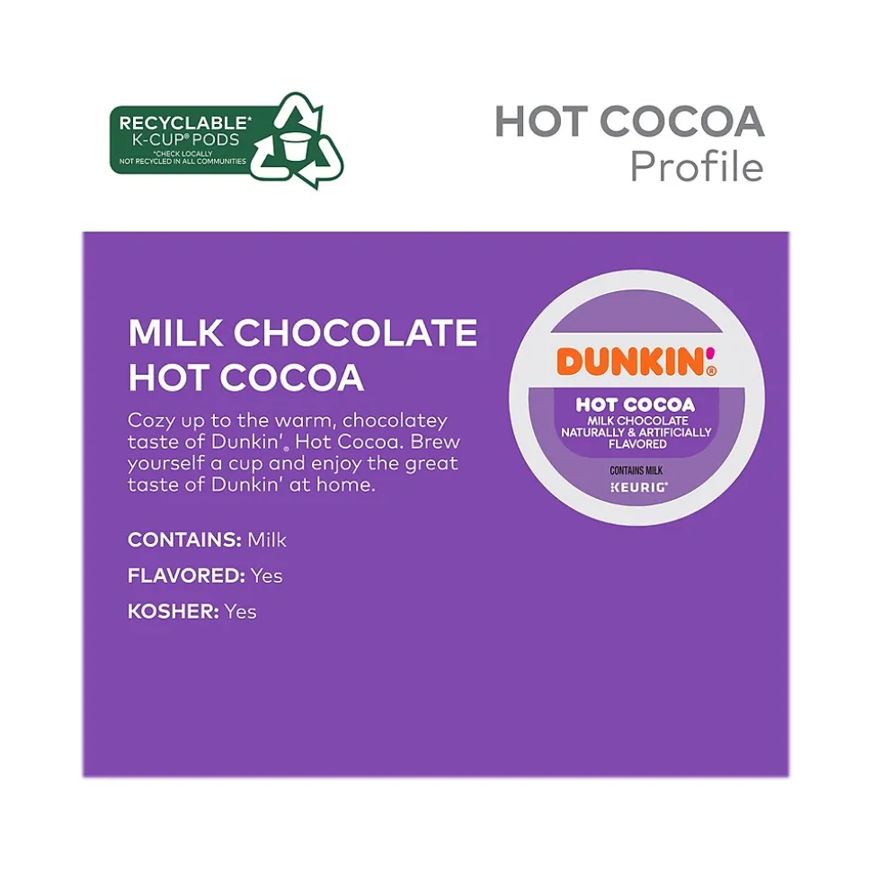 Bring home everything you love about Dunkin’ with Keurig K-Cup pods. Enjoy an authentic Dunkin’ experience in no time at all. It’s just another way they keep you running. Cozy up to the warm, chocolaty taste of Dunkin’ hot cocoa, fresh from your Keurig brewer.