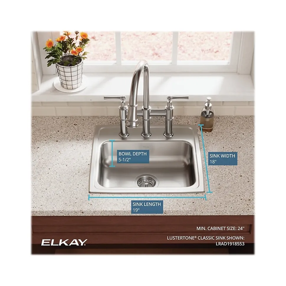 The Elkay Lustertone Classic stainless steel single-bowl drop-in sink with three faucet holes looks as great on day 3000 as it does on day one. The rich, uniform grain is scratch-resistant for heavy-duty use, whether it’s a kitchen sink or a prep, bar, laundry, or commercial sink. Light scratches, which occur with everyday use, naturally blend into the finish of this durable sink with time. Deeper scratches are repairable with the Elkay stainless steel restoration kit.