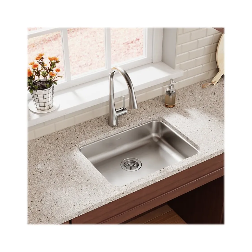 The Elkay Lustertone Classic stainless steel single-bowl undermount sink looks as great on day 3000 as it does on day one. The rich, uniform grain is scratch-resistant for heavy-duty use, whether it’s a kitchen sink or a prep, bar, laundry, or commercial sink. Light scratches, which occur with everyday use, naturally blend into the finish of this durable sink with time. Deeper scratches are repairable with the Elkay stainless steel restoration kit.