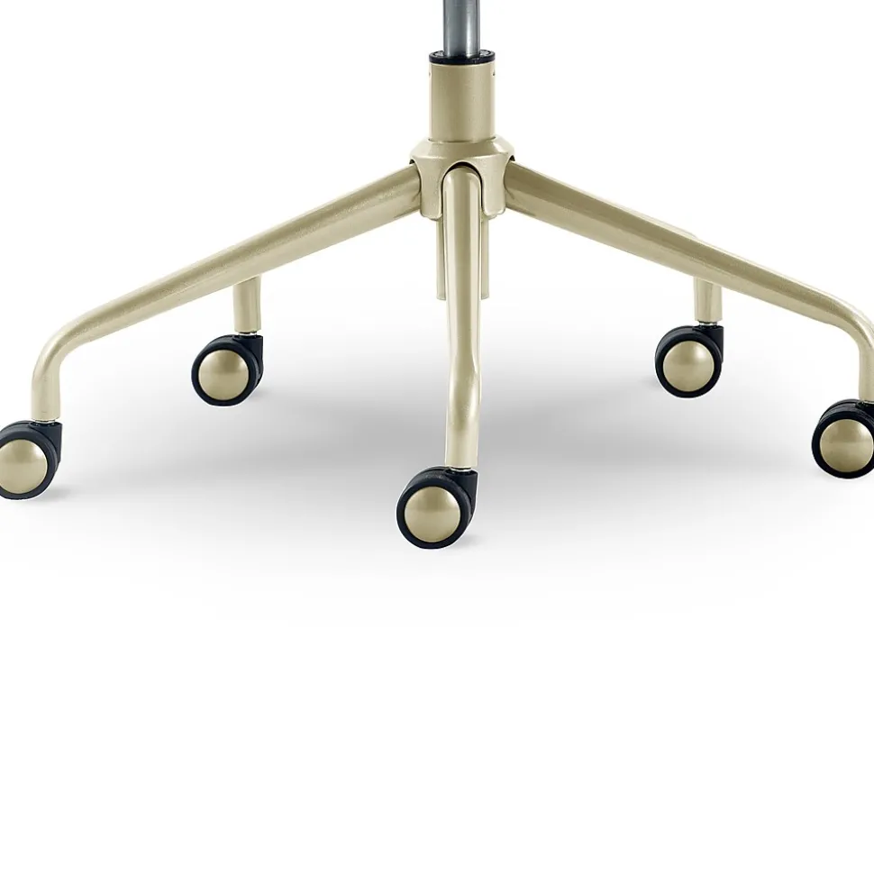 - Lustrous gold metal trim on the base, wheels, and arms adds modern glamour