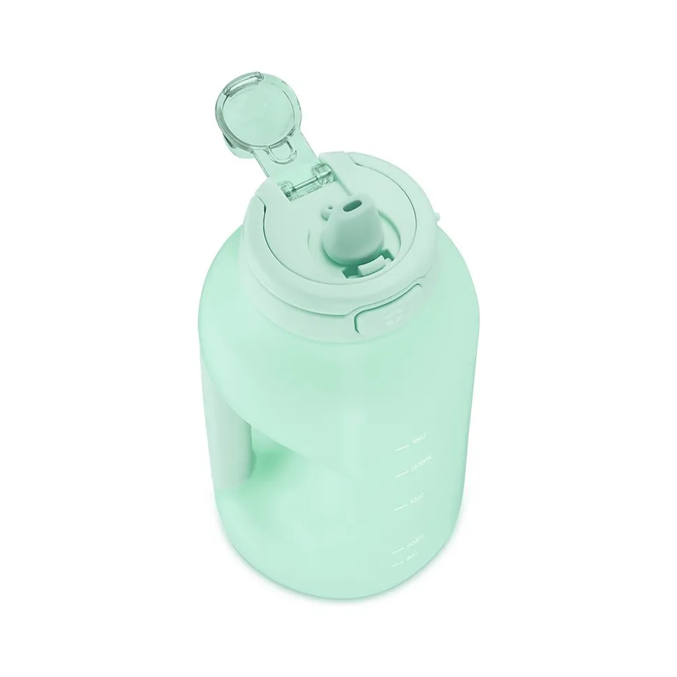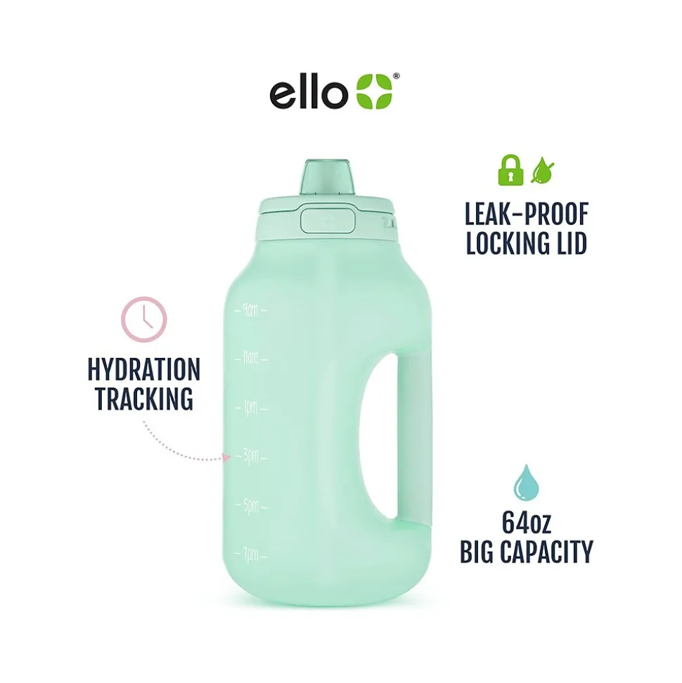 The ello Hydra water bottle with straw includes time markings to remind you when it’s time to drink water throughout the day. The one-touch flip lid keeps the drink surface covered and clean, while the extra-wide opening allows for easy filling, adding ice, and cleaning. Choose between the integrated carry loop or soft-touch handle on the side for easy grab-and-go.