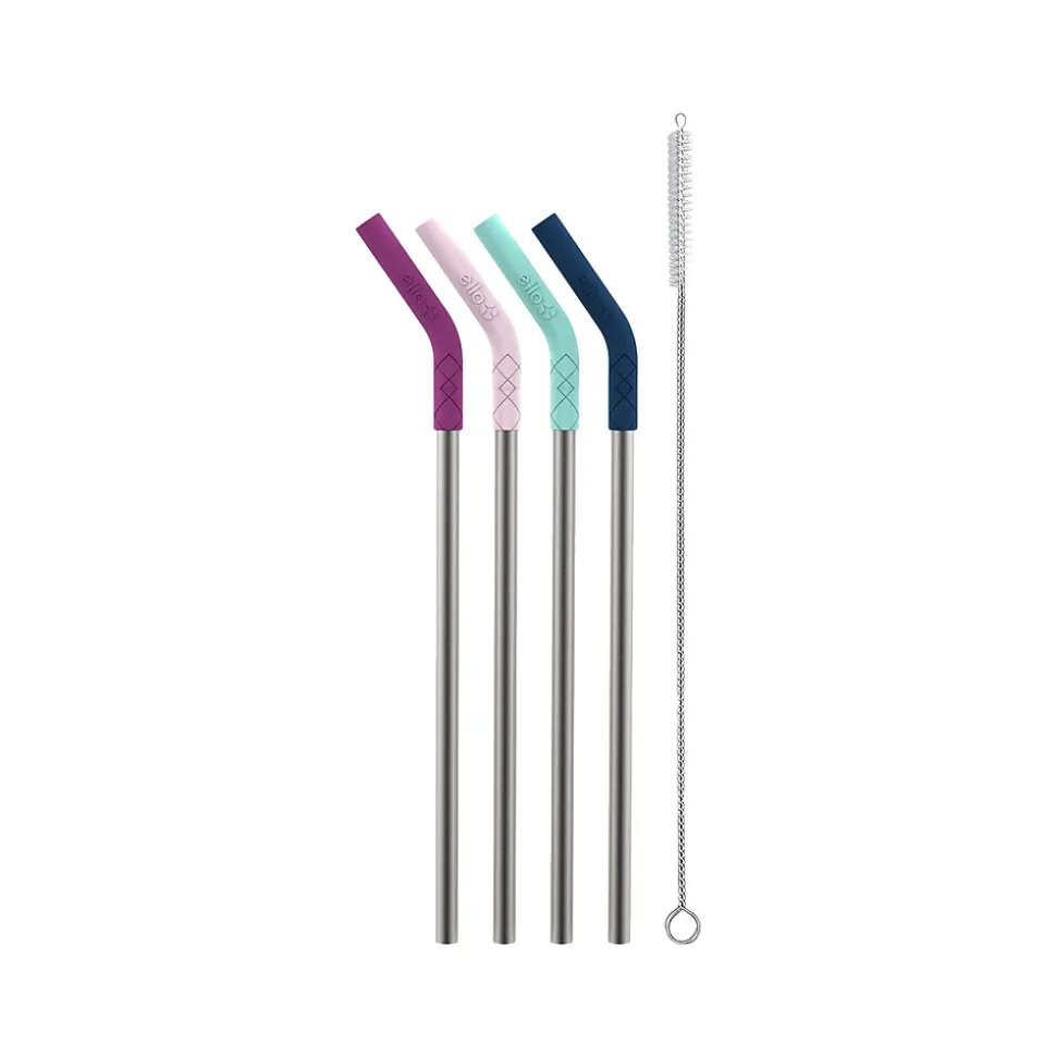 Live green and sip clean with these ello stainless steel straws! These reusable straws are made of FDA food-grade stainless steel with silicone tips that are dishwasher safe and BPA-free. Designed to fit most tumblers, these are the perfect way to ditch disposable straws. The 4-piece set includes a soft brush for thorough cleaning.